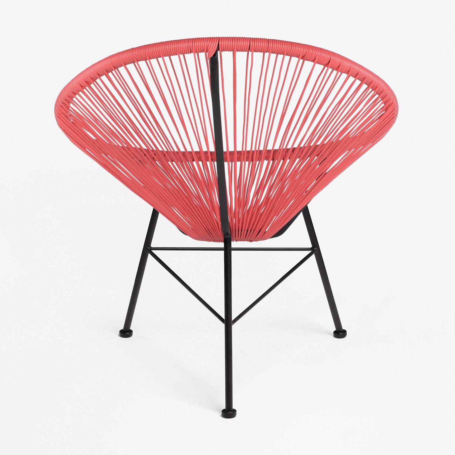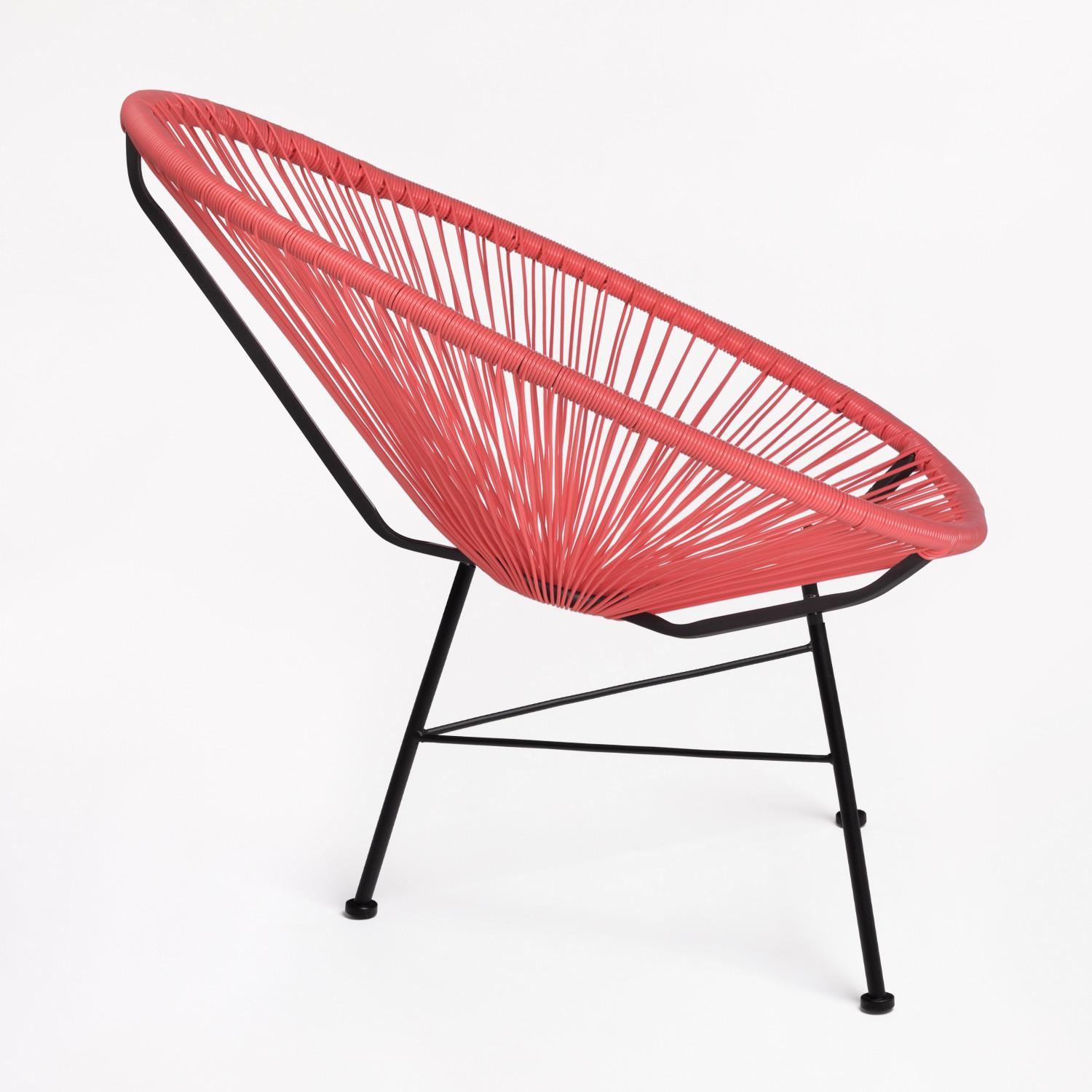 Très belle chaise Acapulco rouge corail. C'est une pièce originale, confortable et élégante. Elle peut aussi bien être utilisée en intérieur comme en extérieur. Sa structure est en acier et le siège en polyéthylène. Hauteur: ~83,5 cm Largeur: 72 cm Profondeur: 83 cm Hauteur du siège: ~46 cm Poids: 4,55 Kg Largeur des Pieds: 46 cm Largeur de Soutien: 72 cm