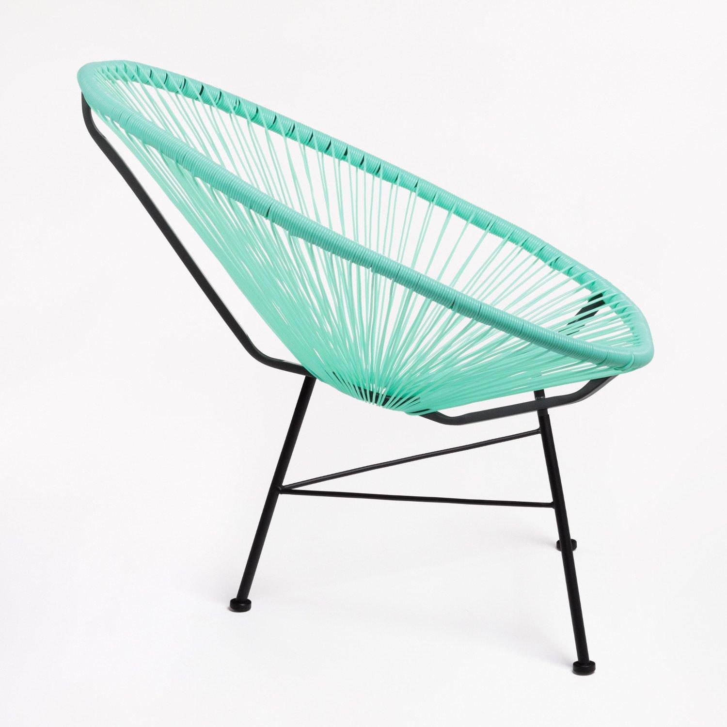 Très belle chaise Acapulco vert jade. C'est une pièce originale, confortable et élégante. Elle peut aussi bien être utilisée en intérieur comme en extérieur. Sa structure est en acier et le siège en polyéthylène. Hauteur: ~83,5 cm Largeur: 72 cm Profondeur: 83 cm Hauteur du siège: ~46 cm Poids: 4,55 Kg Largeur des Pieds: 46 cm Largeur de Soutien: 72 cm
