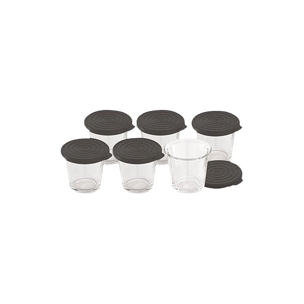 6 verrines en verre avec leur couvercle en silicone, résistantes et pratiques, elles vous permettent de réaliser facilement vos recettes de verrines aussi bien salées que sucrées.