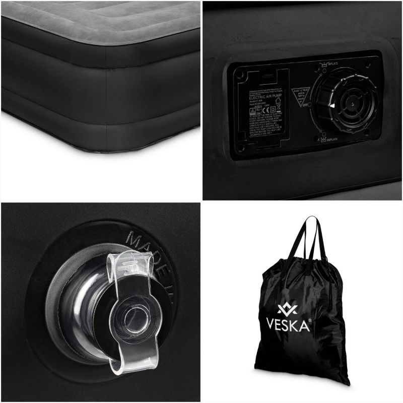 Le matelas gonflable vous offre un confort de sommeil exceptionnel, que ce soit en camping, , lors de visites chez des amis ou de la famille ou pendant des festivals. Fabriqué en PVC robuste de 0,6 mm d'épaisseur, ce matelas est durable et résistant a. Sa surface douce garantit un confort optimal. Grâce à la pompe électrique intégrée, le matelas est prêt à l'emploi en seulement 3 à 5 minutes.