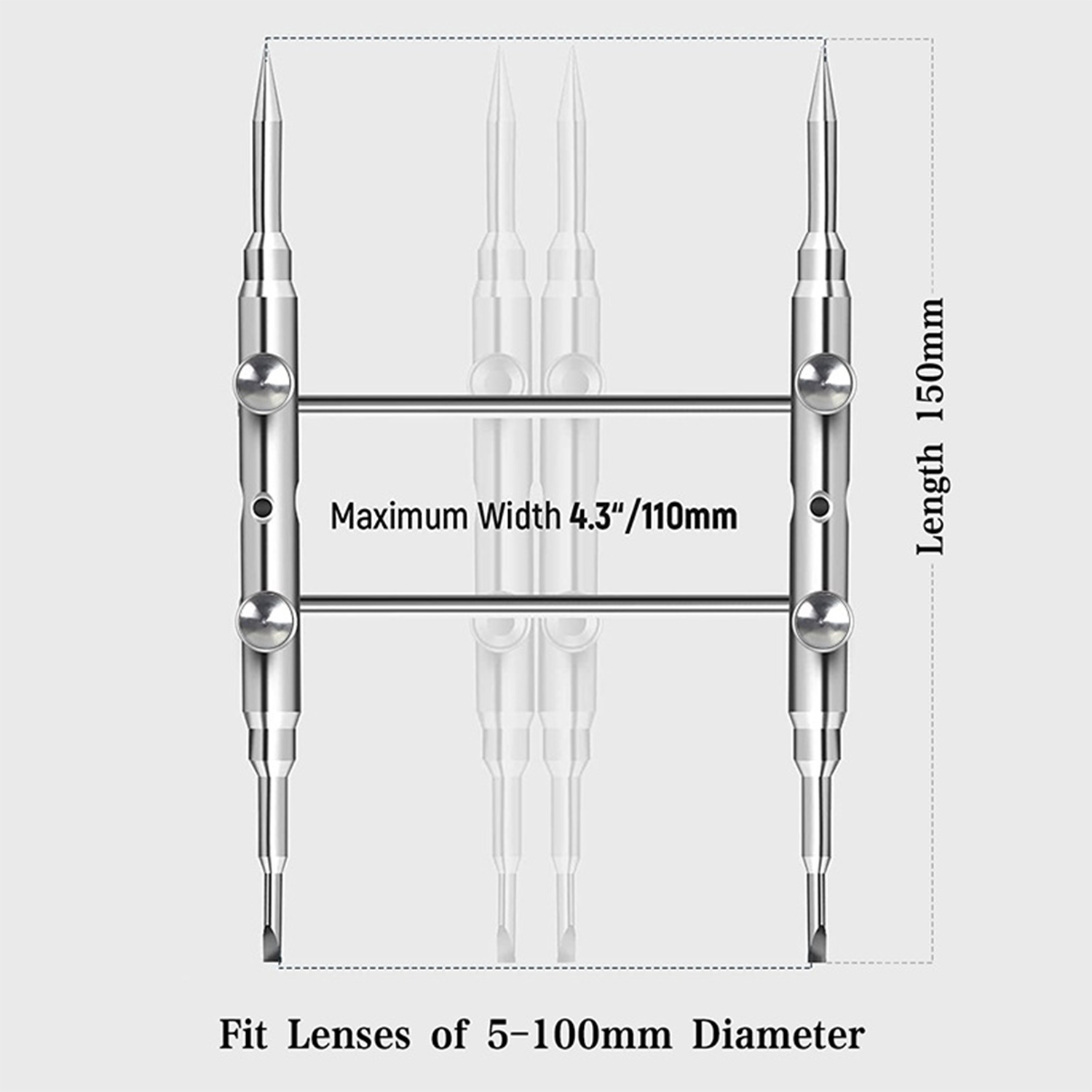 Démontage efficace des objectifs et des filtres : Cet outil à tête transversale est conçu pour un démontage rapide et efficace des objectifs et des filtres de l'appareil photo, simplifiant ainsi les tâches de maintenance pour les photographes.