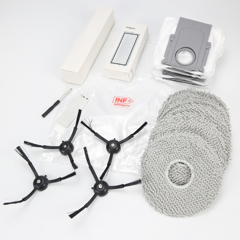 Ensemble complet : Le kit contient tout ce dont vous avez besoin pour maintenir les hautes performances du robot aspirateur. Avec la brosse principale, les brosses latérales, les filtres, les sacs à poussière et les serpillières, vous disposez de toutes les pièces nécessaires pour un nettoyage approfondi et efficace.