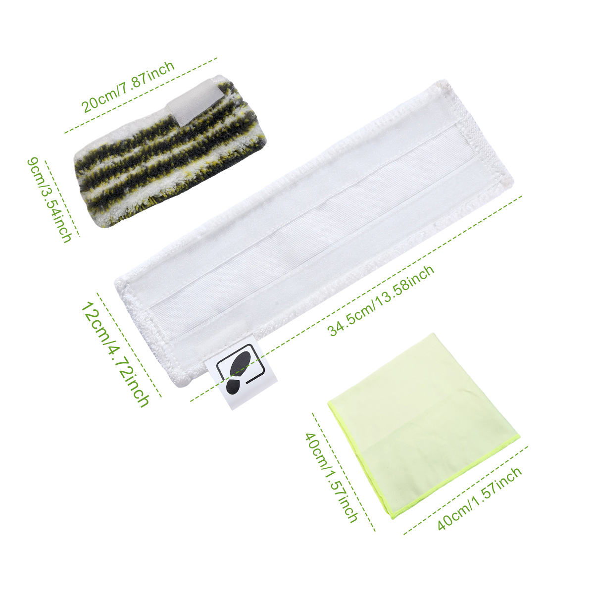 Convient aux nettoyeurs vapeur Kärcher : Ce kit est spécialement conçu pour les nettoyeurs à vapeur Kärcher SC1, SC2, SC3, SC4 et SC5. Le paquet comprend un tampon pour vadrouille à vapeur, deux tampons pour vadrouille et un chiffon de nettoyage super absorbant, ce qui en fait un ensemble d'outils de nettoyage polyvalent et indispensable.