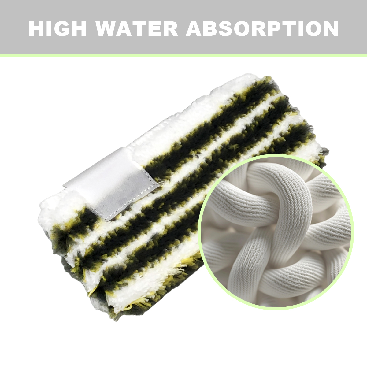 Passer le carrousel d'imagesAbsorption d'eau élevée : Les accessoires de nettoyage sont fabriqués à partir de matériaux en microfibre et en nylon ultra fins, connus pour leur forte absorption d'eau. Cela permet aux chiffons de nettoyage et aux tampons de vadrouille d'absorber et de retenir rapidement l'eau, ce qui les rend idéaux pour traiter les déversements et la saleté.