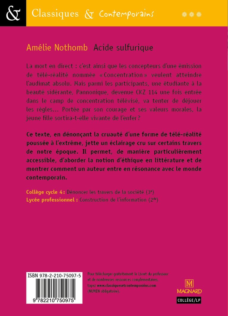 | Libellé | Acide sulfurique - Classiques et Contemporains (Poche) |