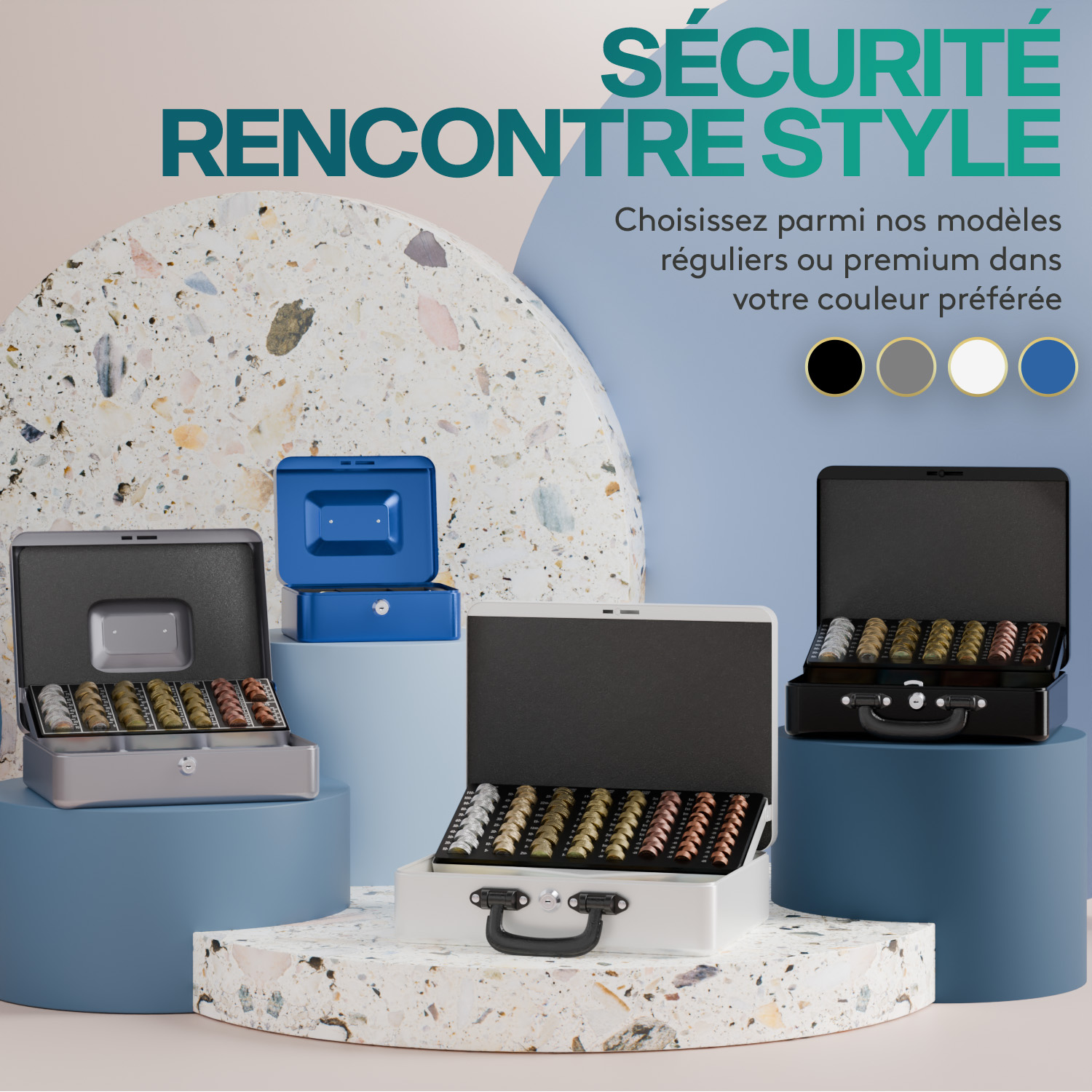 ACROPAQ Caisse à Monnaie - Petite caisse 20.5x16x9cm- 8 compartiments- 2 clés, Poignée de transport robus