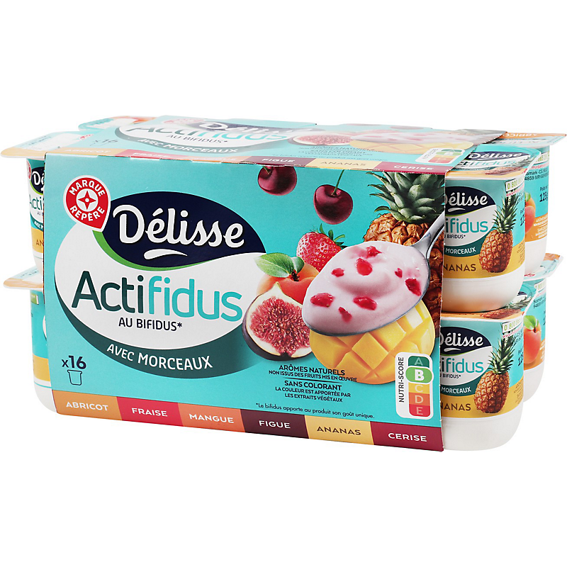 Actifidus panaché aux fruits avec morceaux - 16 x 125 g - DELISSE