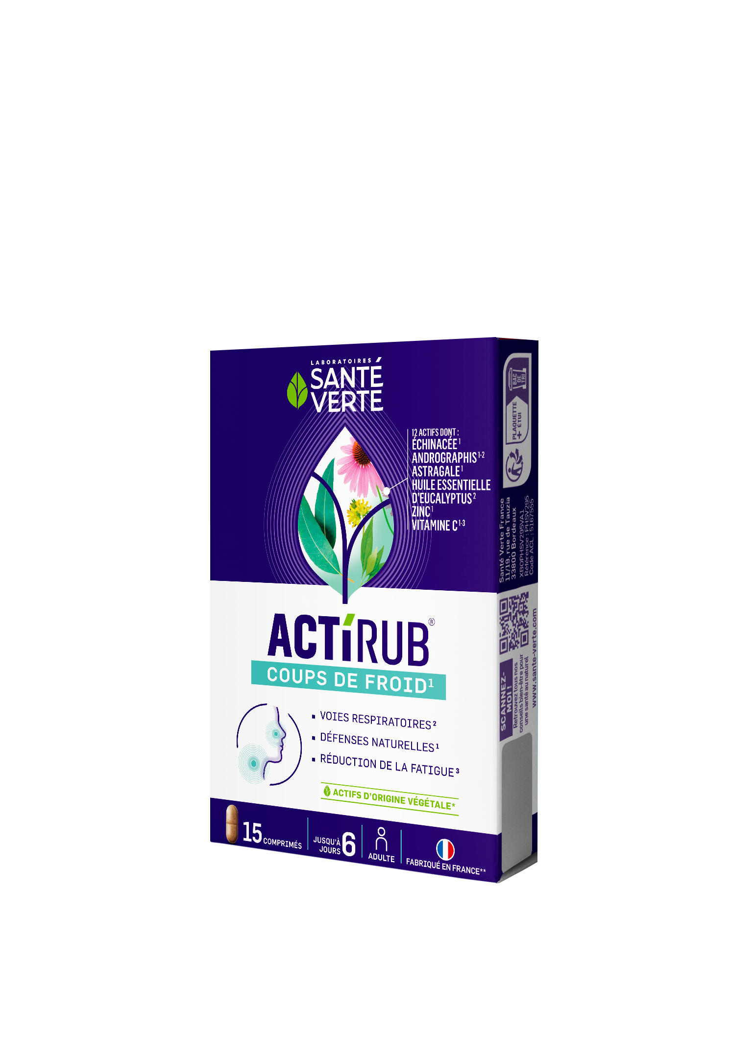 ACTIRUB®* comprimés est un complexe de 11 ingrédients dont l'Andrographis qui contribue à atténuer naturellement les troubles respiratoires. La formule contient également du Zinc qui contribue au fonctionnement normal du système immunitaire et de la Vitamine C qui contribue à la réduction de la fatigue. Enfin, l’Échinacée contribue à soutenir les défenses naturelles pendant les périodes hivernales.