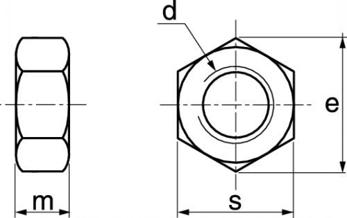 Cet écrou peut être associé à une vis métaux DIN 933 ou à une vis métaux DIN 931 et à une rondelle plate moyenne de type M NFE25513