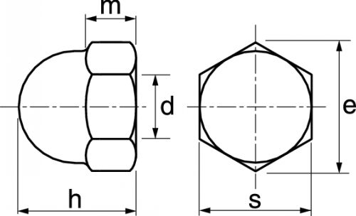 Cet écrou borgne peut être associé à une vis à métaux DIN 933 ou à une vis à métaux DIN 931 et à une rondelle plate moyenne type M NFE 25513-25514