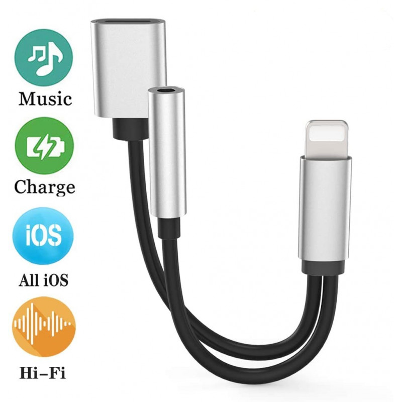 Adaptateur 2 en 1 jack 3,5 mm et Ios iPhone 7 8 X 11 12 13 - Gris