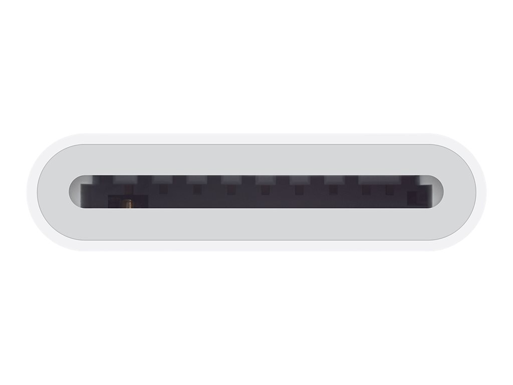 Avec l’Adaptateur Lightning vers lecteur de carte SD Apple, rien n’est plus simple que de télécharger des photos et des vidéos de votre appareil photo numérique sur votre iPad ou iPhone avec connecteur Lightning. Vous pouvez ainsi les visionner sur le magnifique écran Retina et les faire admirer à vos proches. Après insertion de la carte SD dans le lecteur, votre iPad ou iPhone ouvre automatiquement l’app Photos, qui classe vos photos en Moments, Collections et Années. Quand vous utilisez la photothèque iCloud, toutes vos photos et vos vidéos en pleine résolution sont stockées de manière sécurisée sur iCloud et automatiquement ajoutées à l’app Photos sur tous vos appareils. Grâce au Partage de photos iCloud, vous pouvez partager vos photos et vos vidéos uniquement avec les personnes de votre choix. L’Adaptateur Lightning vers lecteur de carte SD prend en charge les formats photo standard, notamment JPEG et RAW, ainsi que les formats vidéo SD et HD, comme H.264 et MPEG-4. Il prend en charge le transfert de données à des vitesses atteignant celles de l’USB 3 sur l’iPad Pro 12,9 pouces, et celles de l’USB 2 sur l’iPad Pro 9,7 pouces et tous les autres modèles d’iPhone et d’iPad. Caractéristiques principales : Adaptateur Lightning vers lecteur de carte SD Prise en charge des formats JPEG et RAW Compatibilité iPhone : iPhone 5 / iPhone 5c / iPhone 5s / iPhone SE / iPhone 6 / iPhone 6 Plus / iPhone 6s / iPhone 6s Plus Compatibilité iPad : iPad avec écran Retina / iPad mini / iPad mini 2 / iPad Air / iPad Air 2 / iPad mini 3 / iPad mini 4 / iPad Pro (9,7 pouces) / iPad Pro (12,9 pouces)