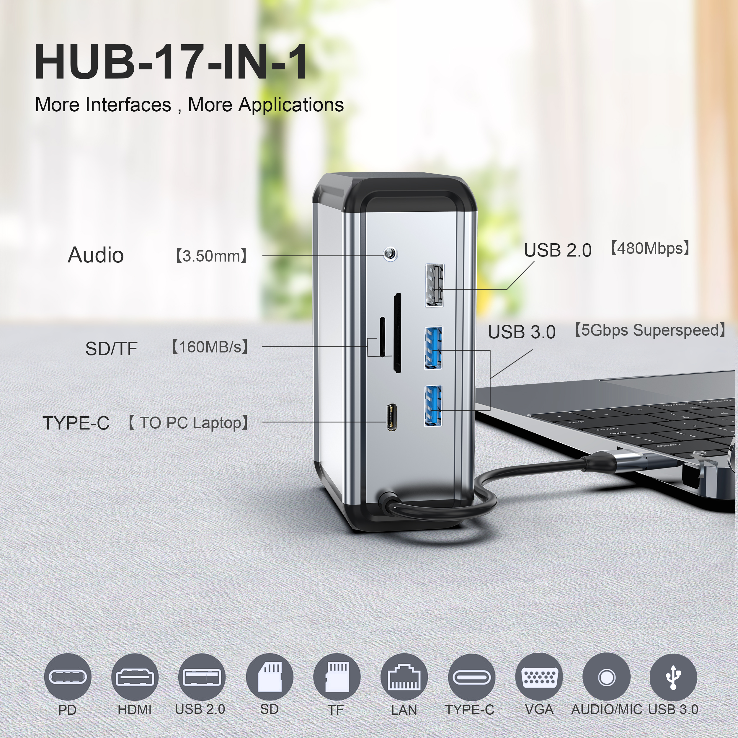 Compatibilité universelle : Conçu pour la polyvalence, ce concentrateur USB-C 12 en 1 est compatible avec une large gamme d'appareils, notamment les ordinateurs portables, les tablettes et les smartphones, ce qui en fait un compagnon indispensable pour le travail et les loisirs.