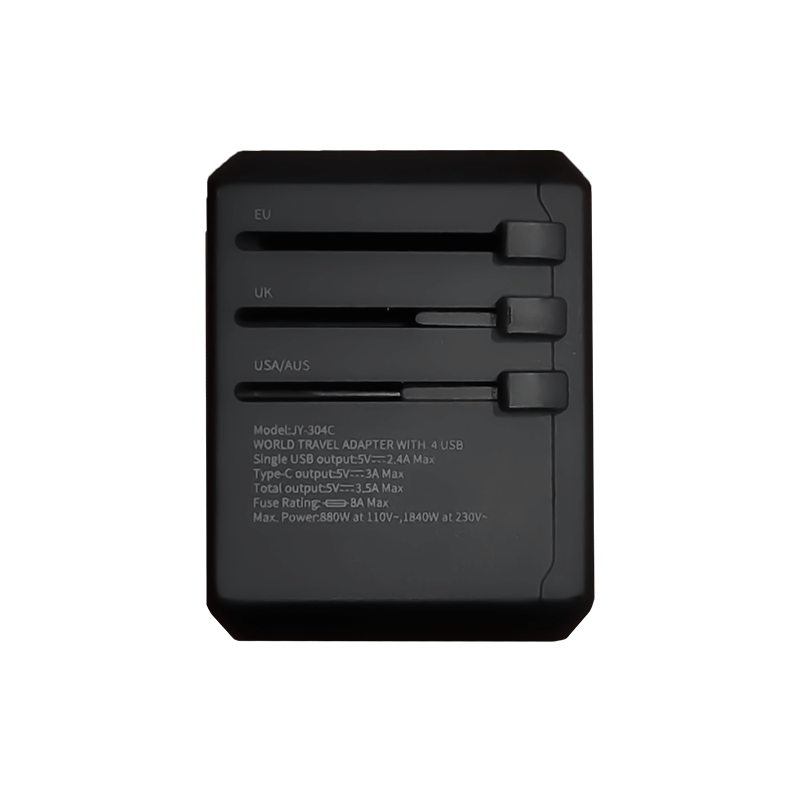 Votre adaptateur de voyage universel à emporter dans tous vos déplacements ! Adaptateur prise universel pouvant charger plusieurs appareils simultanément grâce aux 3 ports USB et 1 port USB-C. Disposant d’une prise EU, UK, AU et US, cet adaptateur de voyage est compatible dans plus de 150 pays. Pour les specs : 3 ports USB et 1 port USB-C (15W) Socle universel Bouton poussoir Présence de LED Utilisable dans plus de 150 pays : AUS Plug / EU Plug / US Plug / UK Plug Matières : 100% ABS
