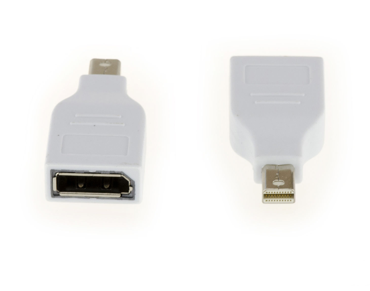 Connecteur DisplayPort 20 broches Femelle. Connecteur Mini-DisplayPort 20 broches Mâle. Dimensions: 45x22x11mm.
