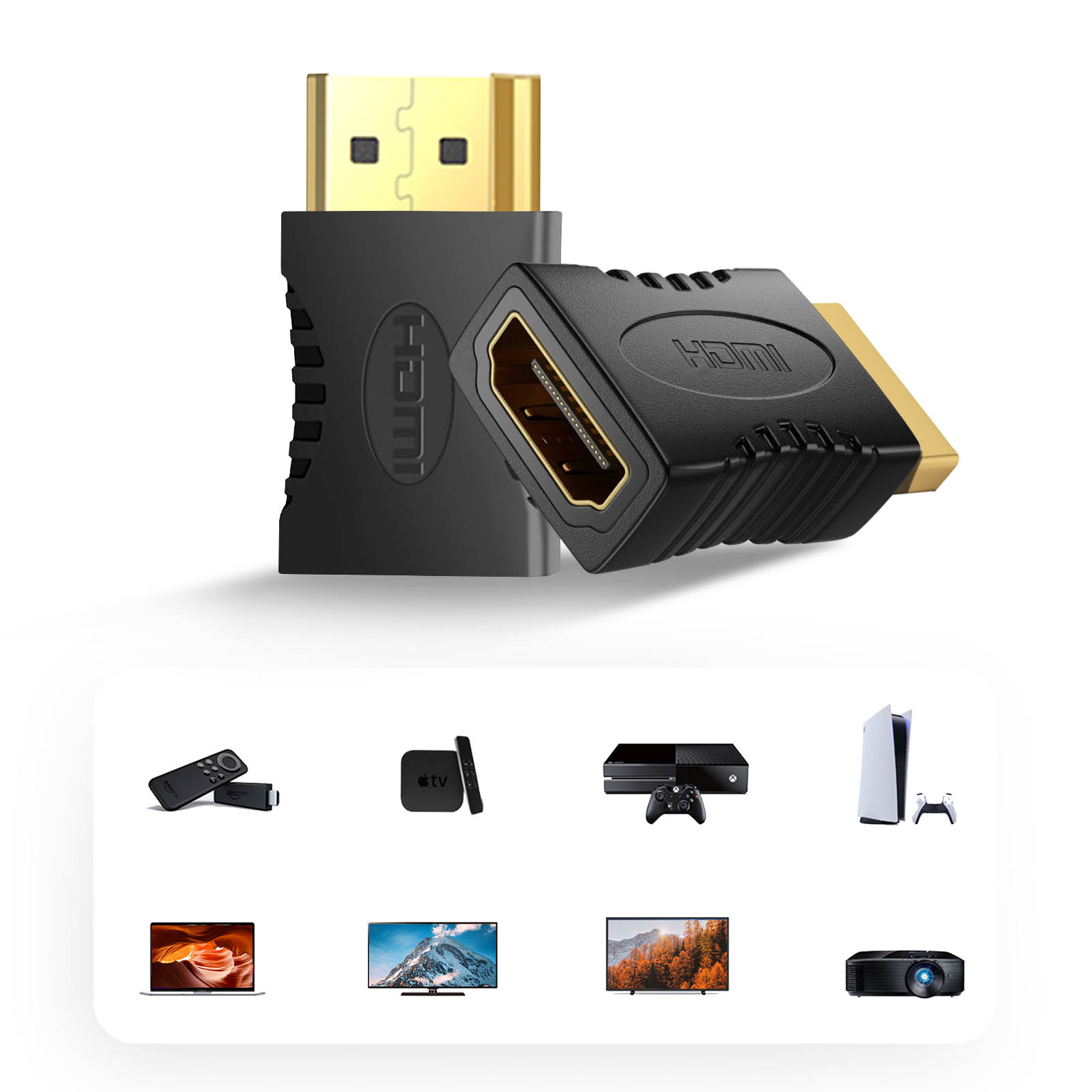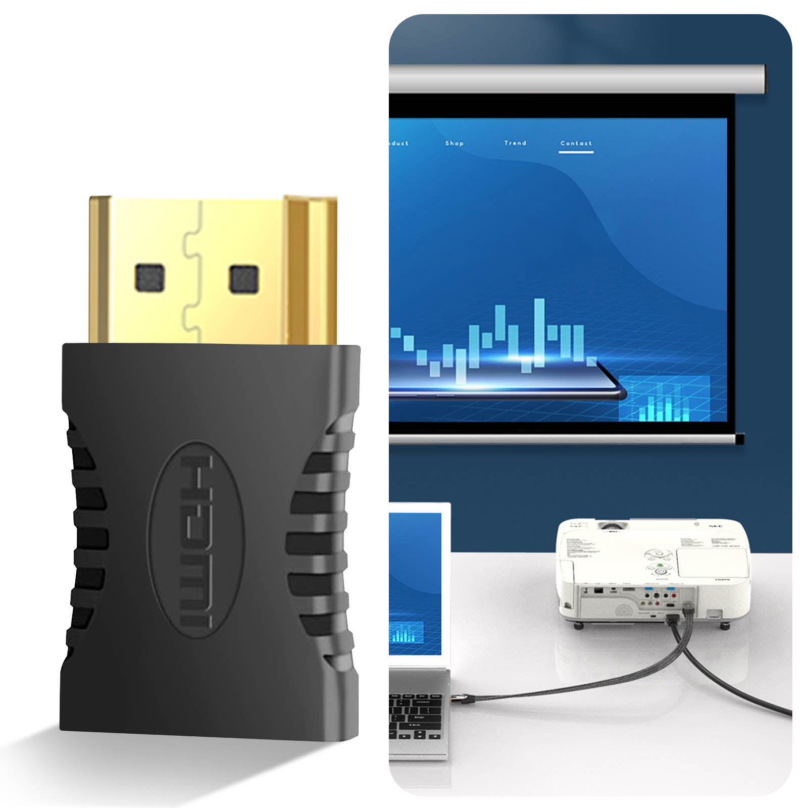 Adaptateur HDMI male vers femelle prenant en charge la resolution 4K. Format ideal pour adapter vos cables trop rigides pour etre branches sur votre appareil. Anti arrachement, il prolonge la duree de vie de votre cable et la securite de vos appareils.