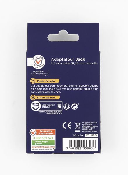 | Libellé | Adaptateur jack 3,5mm mâle/6,35mm femelle - Sélection d’Experts - Linkster |