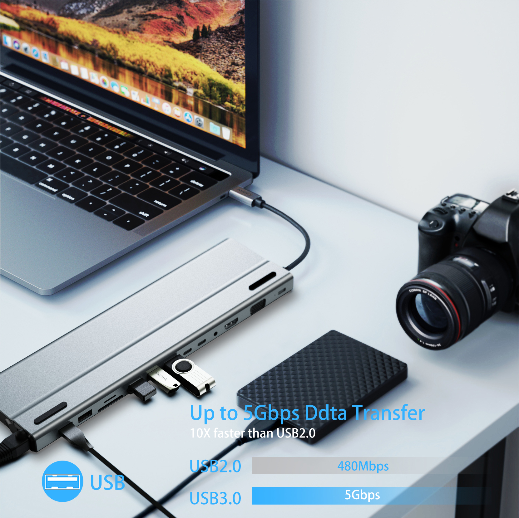 Adaptateur multiport USB-C 14 en 1 avec HDMI, VGA, Ethernet, lecteur de carte SD/TF
