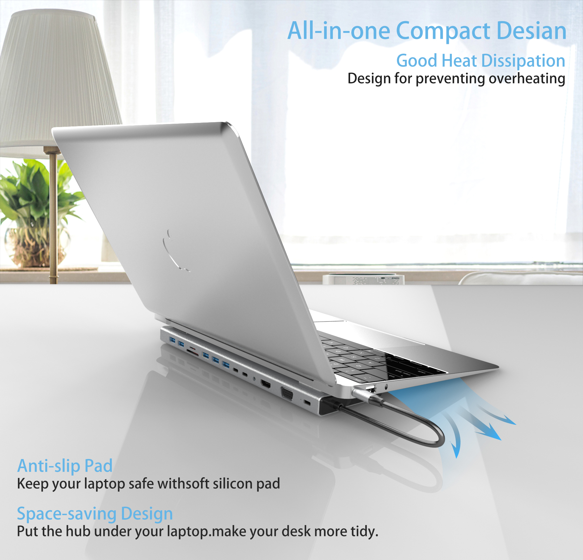 Compatibilité étendue : Conçu pour la polyvalence, ce hub 14 en 1 est compatible avec une large gamme d'appareils, notamment les ordinateurs portables, les tablettes et les smartphones dotés d'un port USB-C. Sa fonctionnalité plug-and-play garantit une configuration sans effort sans avoir besoin de pilotes ou de logiciels supplémentaires.