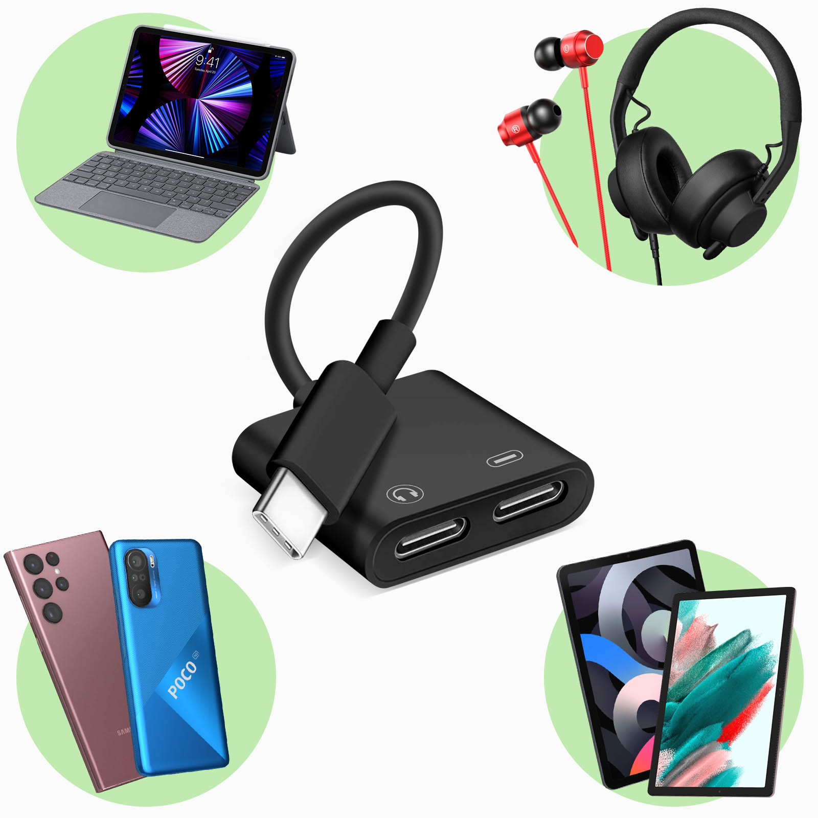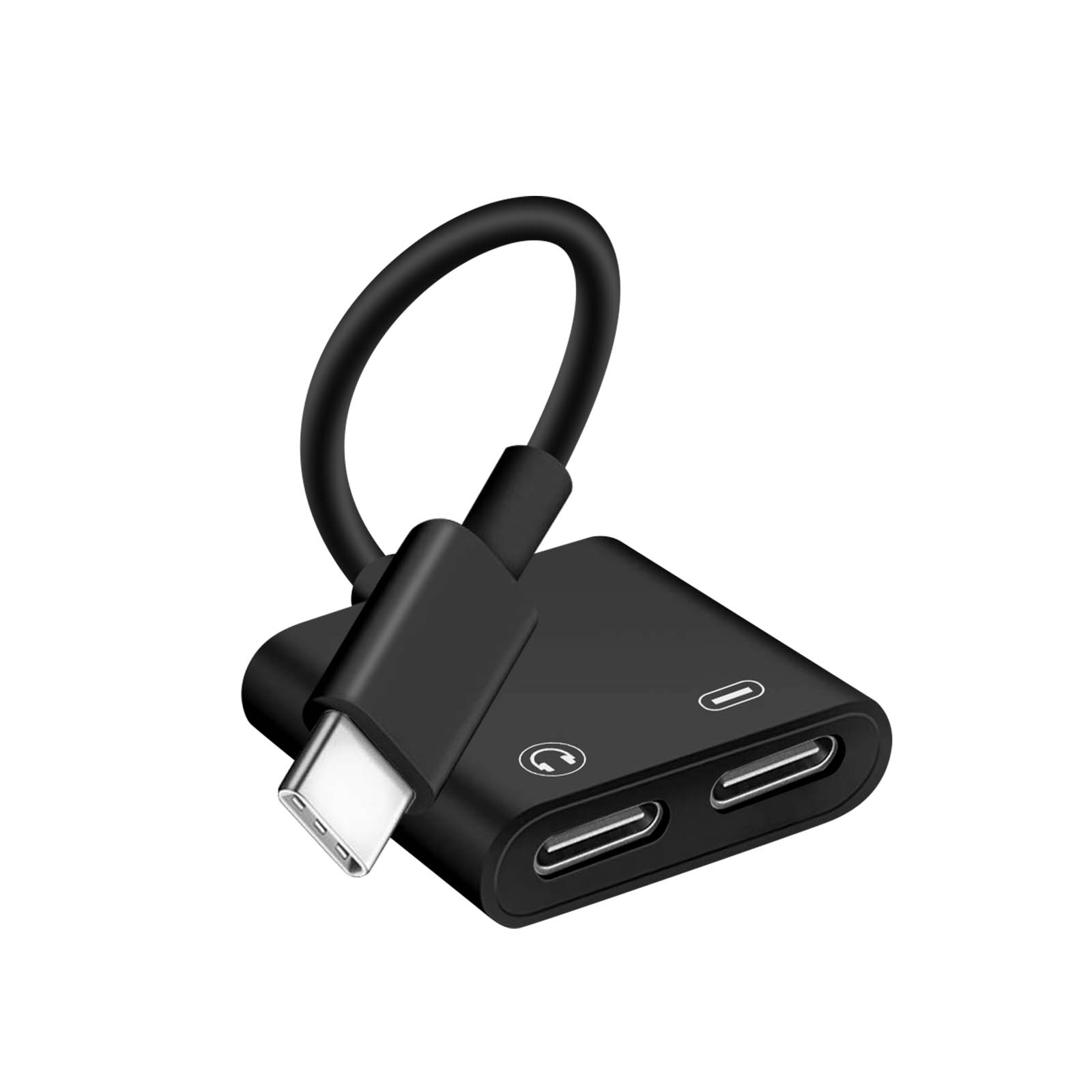 Libellé Adaptateur USB-C Mâle vers Double USB-C Femelle Audio et Charge Compact Noir