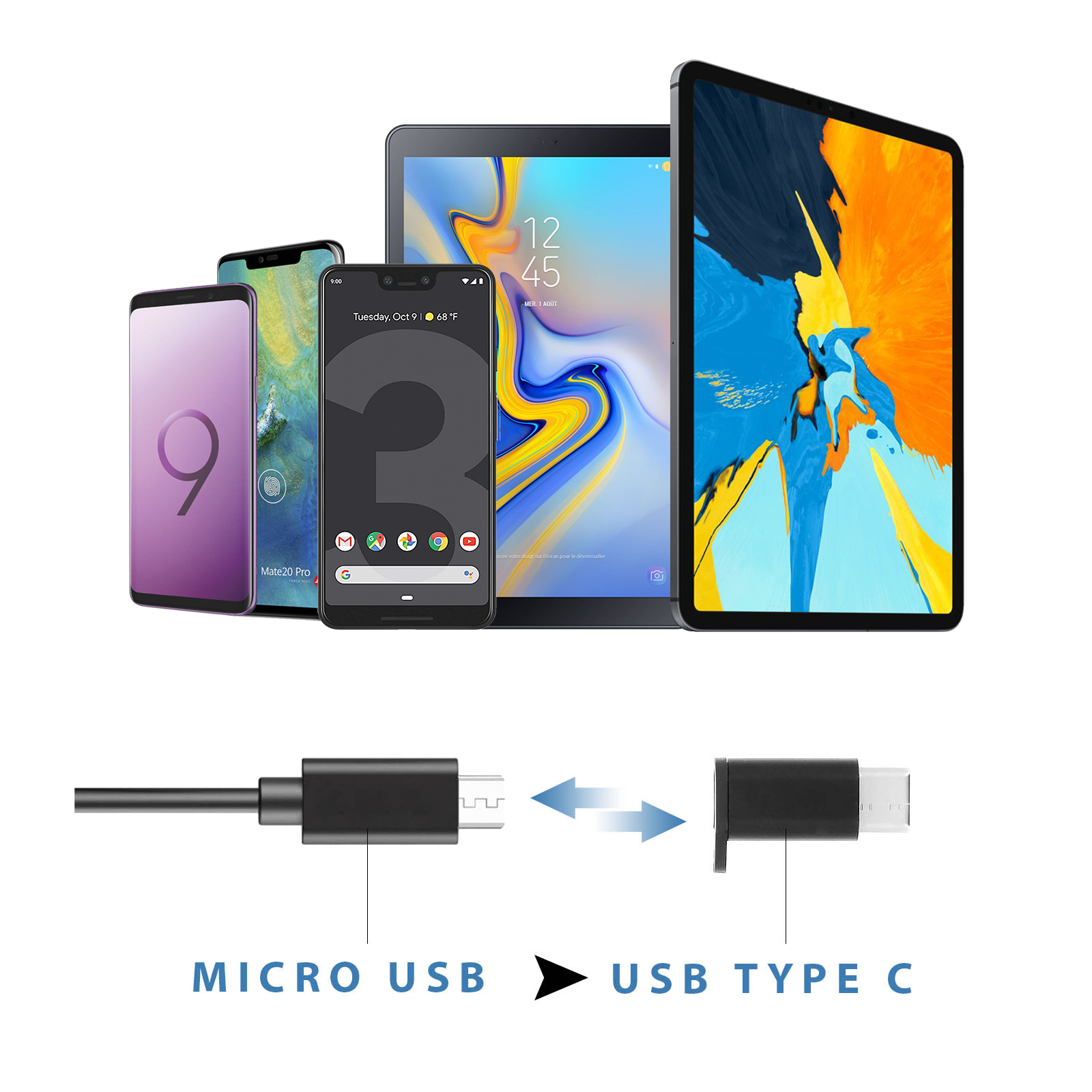 Adaptateur USB type C vers micro-USB pour smartphone/tablette. Idéal pour transformer votre câble micro-USB en câble USB-C. Ainsi, vous pouvez recharger et synchroniser facilement vos données. Design compact. Encoche d'accroche pour ne pas le perdre.