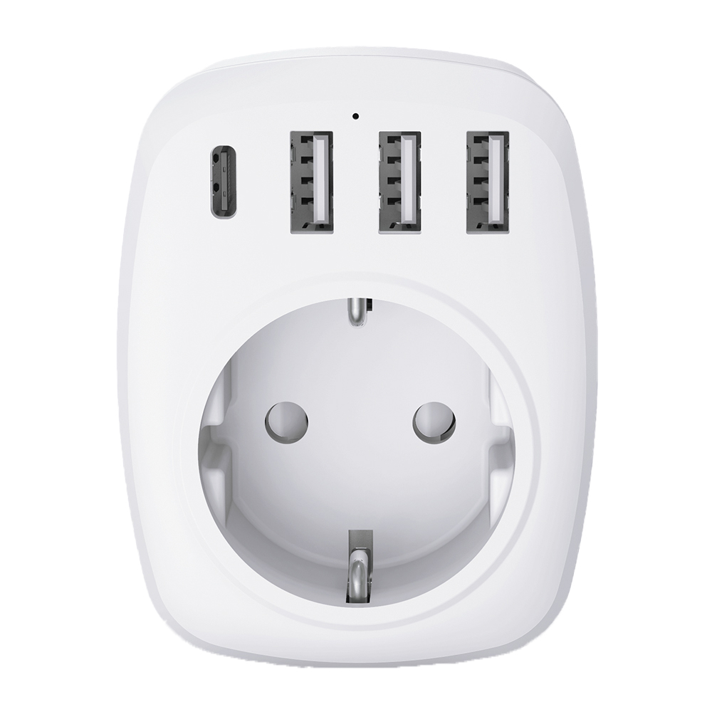 La caractéristique remarquable de cet adaptateur réside dans ses 4 ports USB intégrés. Vous pouvez désormais recharger jusqu'à 4 appareils mobiles simultanément, tels que des smartphones, des tablettes, des power banks et d'autres dispositifs USB, sans nécessiter de chargeur supplémentaire. Cela facilite grandement la recharge de vos appareils électroniques lors de vos déplacements.