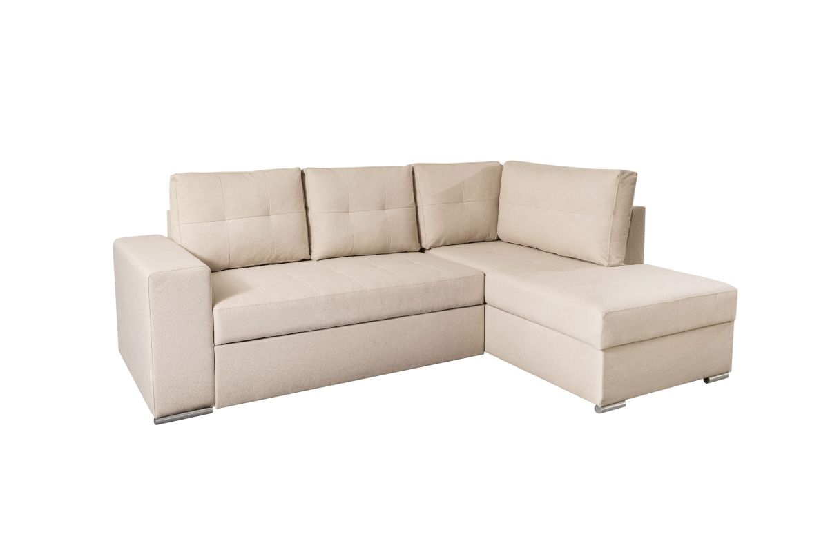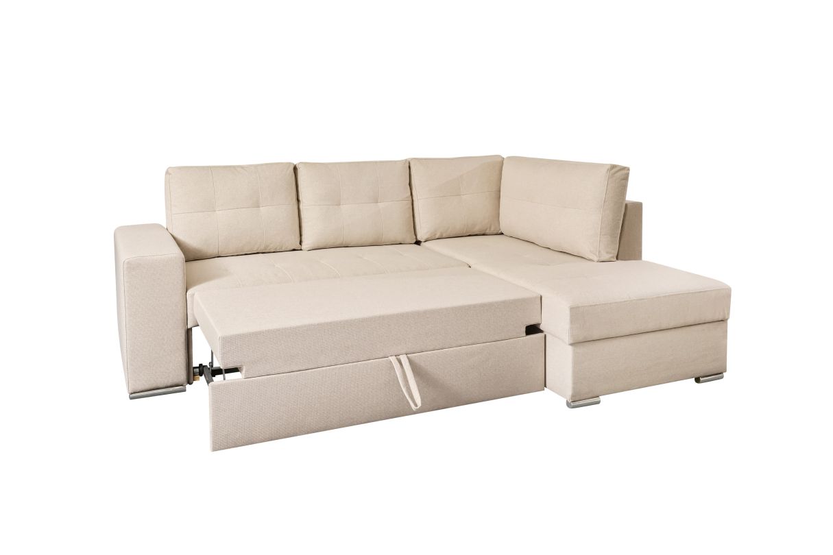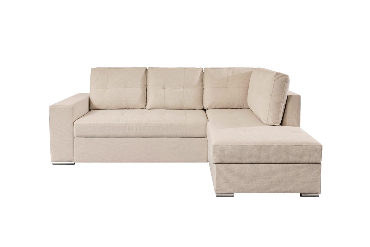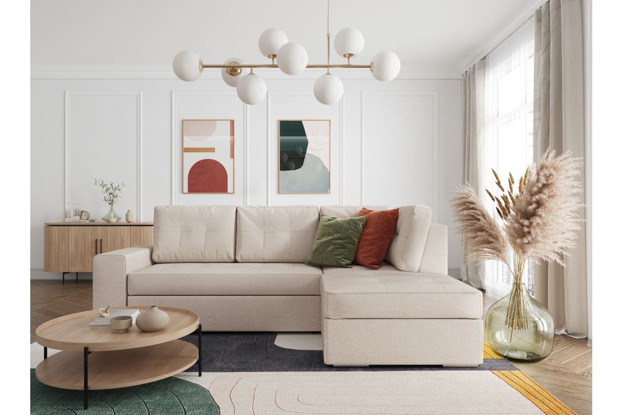 Libellé ADEN - Canapé d'angle convertible avec coffre en tissu - Beige - Angle Droit