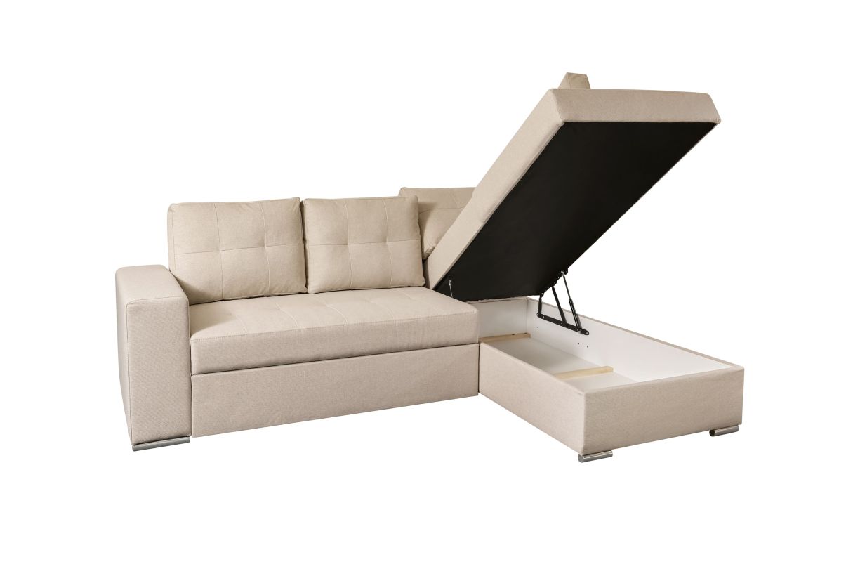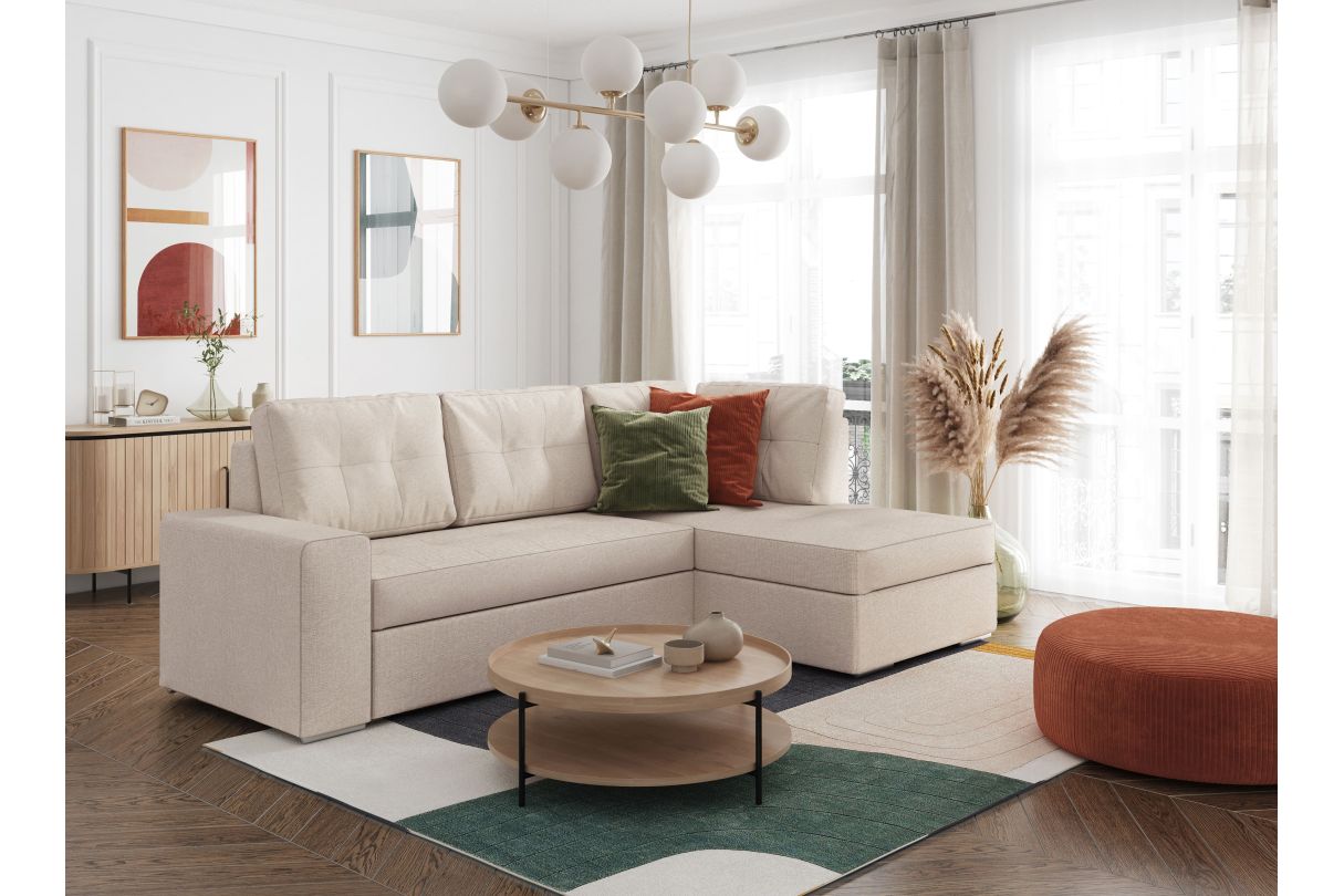ADEN - Canapé d'angle convertible avec coffre en tissu - Beige - Angle Droit