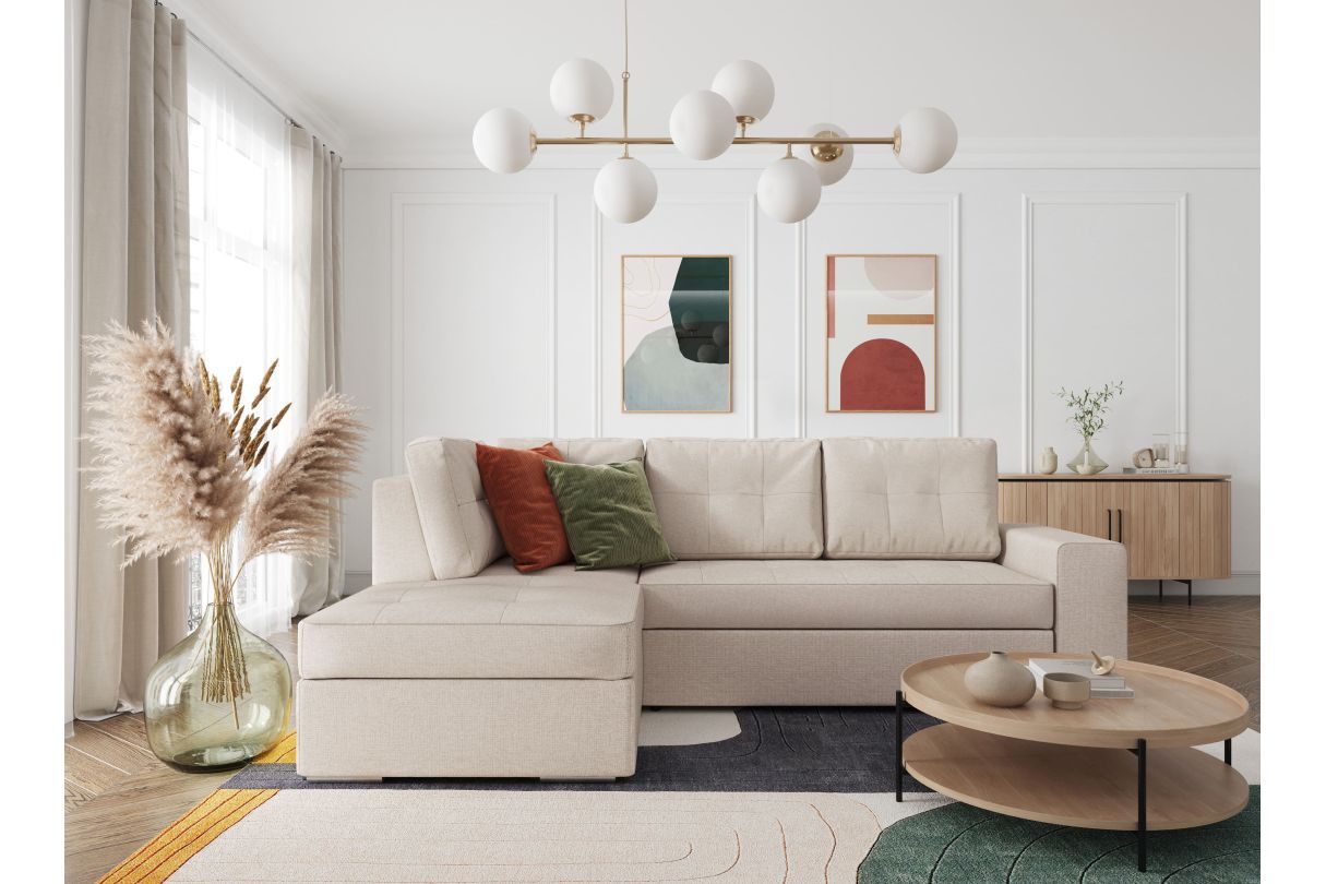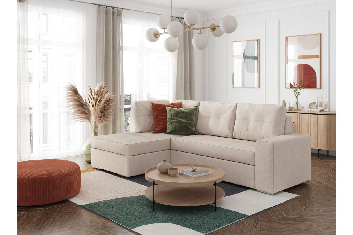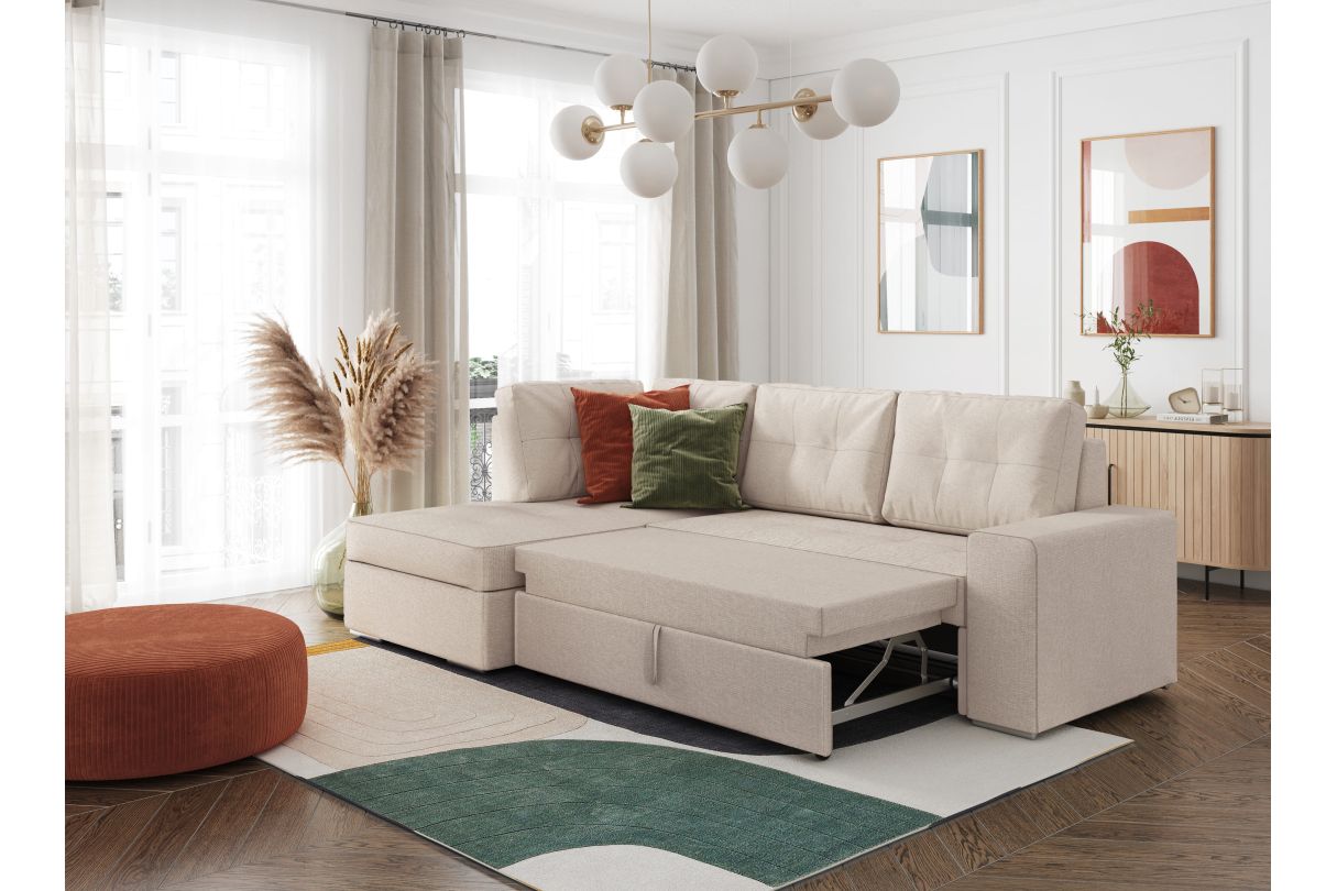 | Libellé | ADEN - Canapé d'angle convertible avec coffre en tissu - Beige - Angle Gauche |