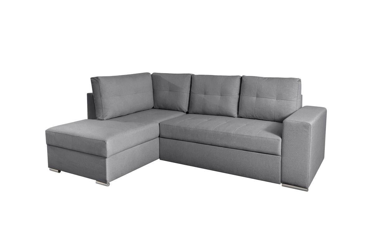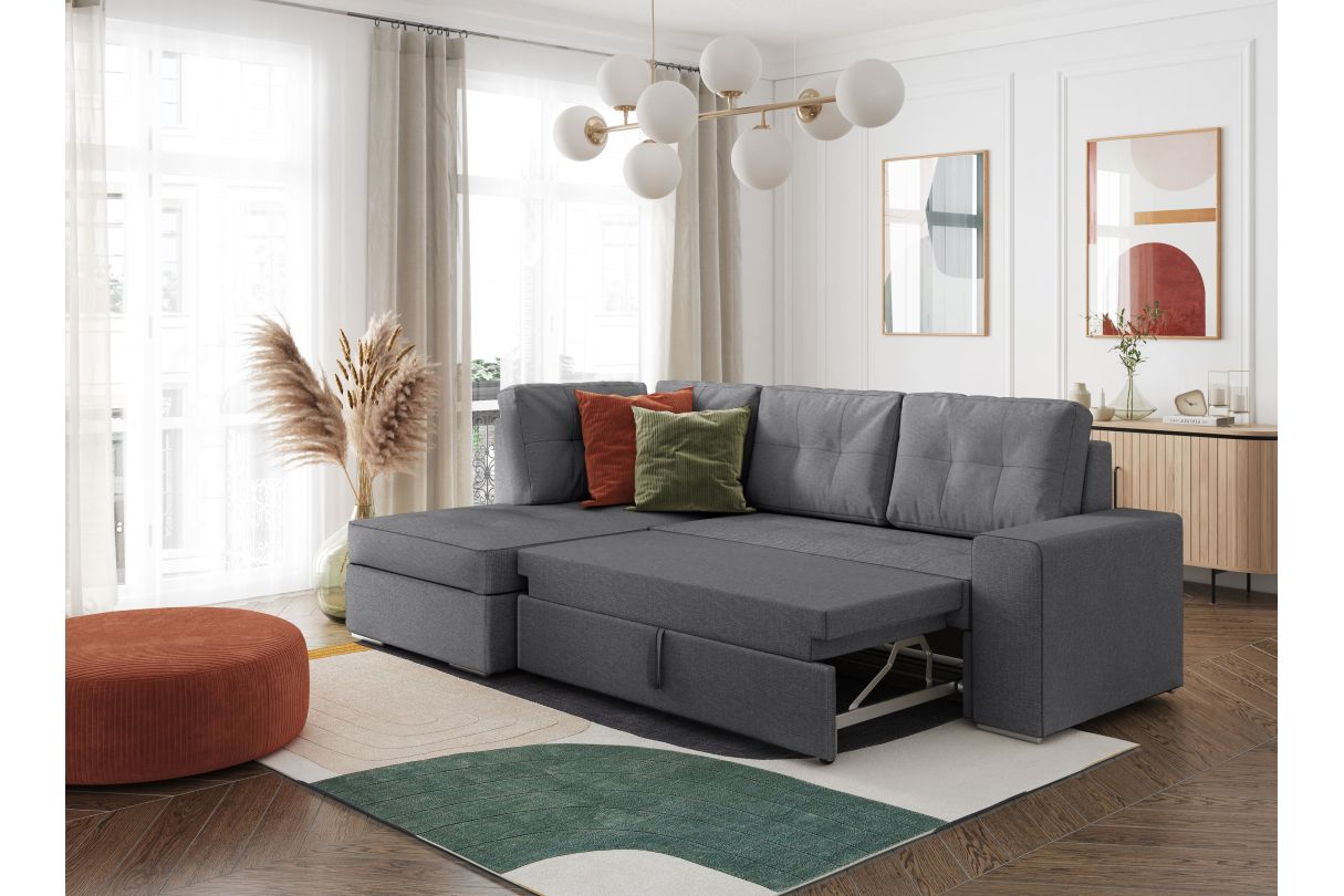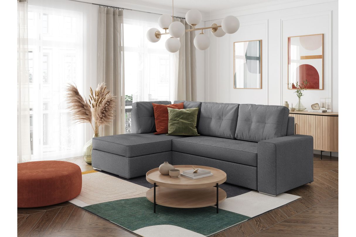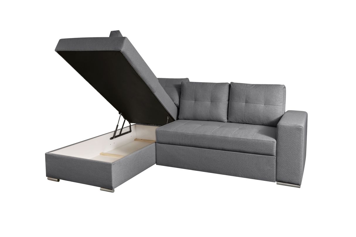 ADEN - Canapé d'angle convertible avec coffre en tissu - Gris - Angle Gauche