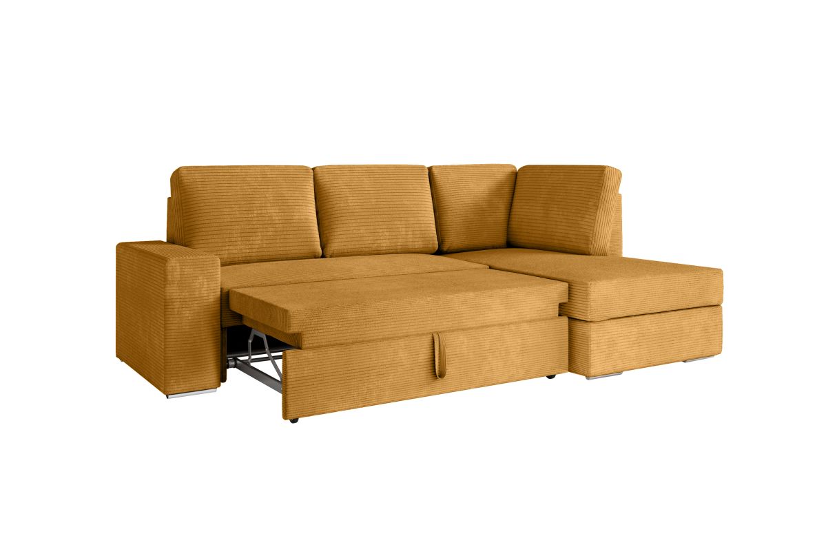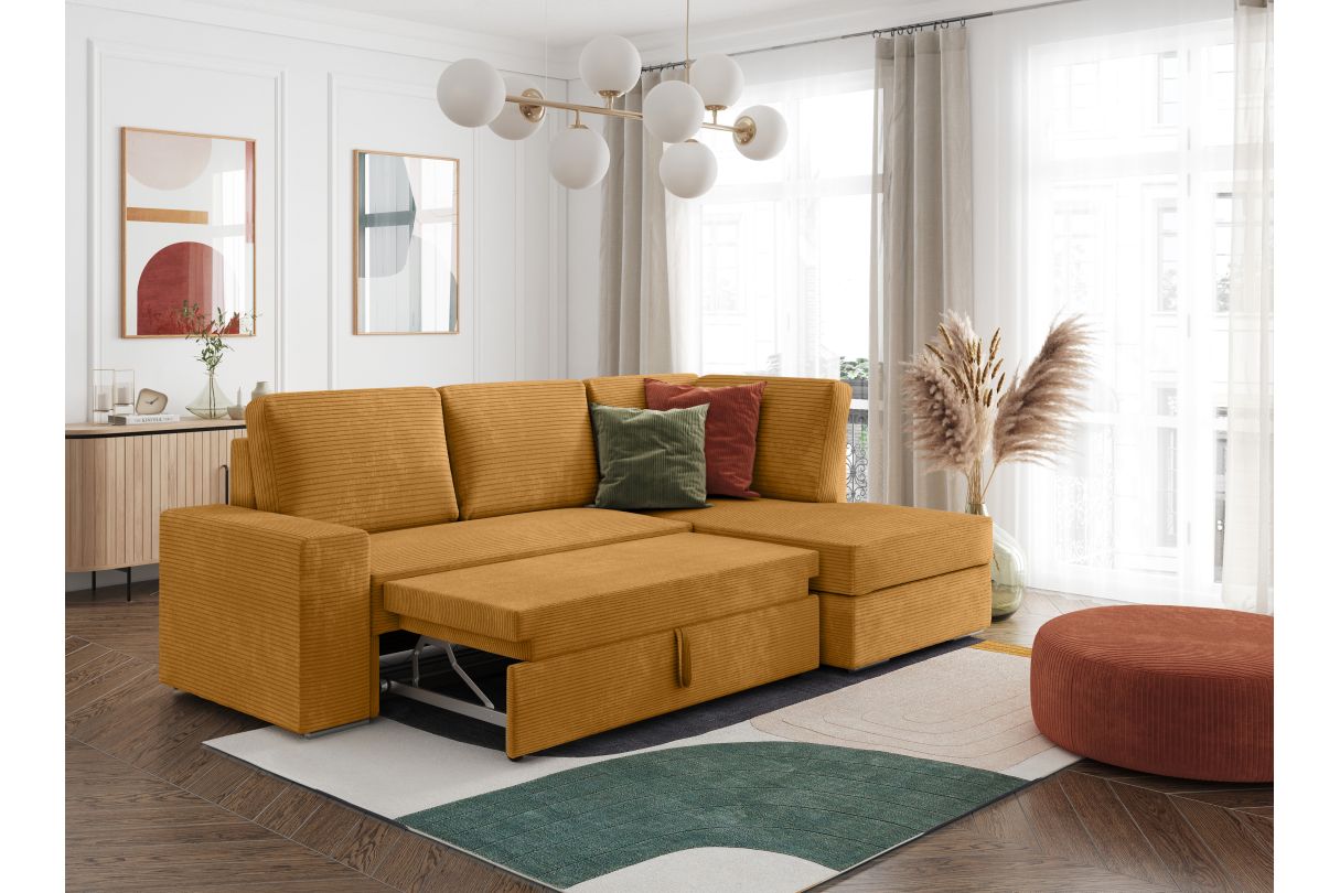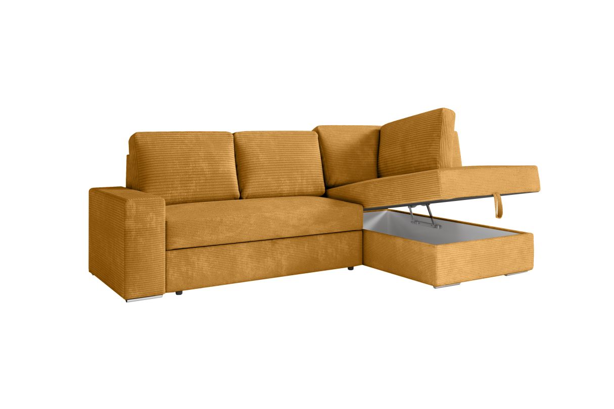 ADEN - Canapé d'angle convertible avec coffre en velours côtelé - Angle droit - Jaune