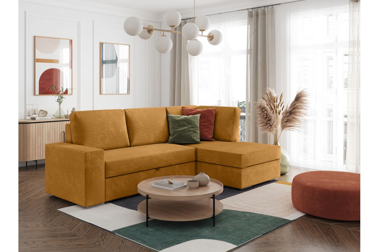 | Libellé | ADEN - Canapé d'angle convertible avec coffre en velours côtelé - Angle droit - Jaune |