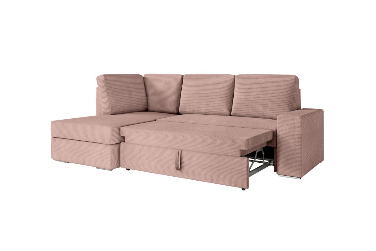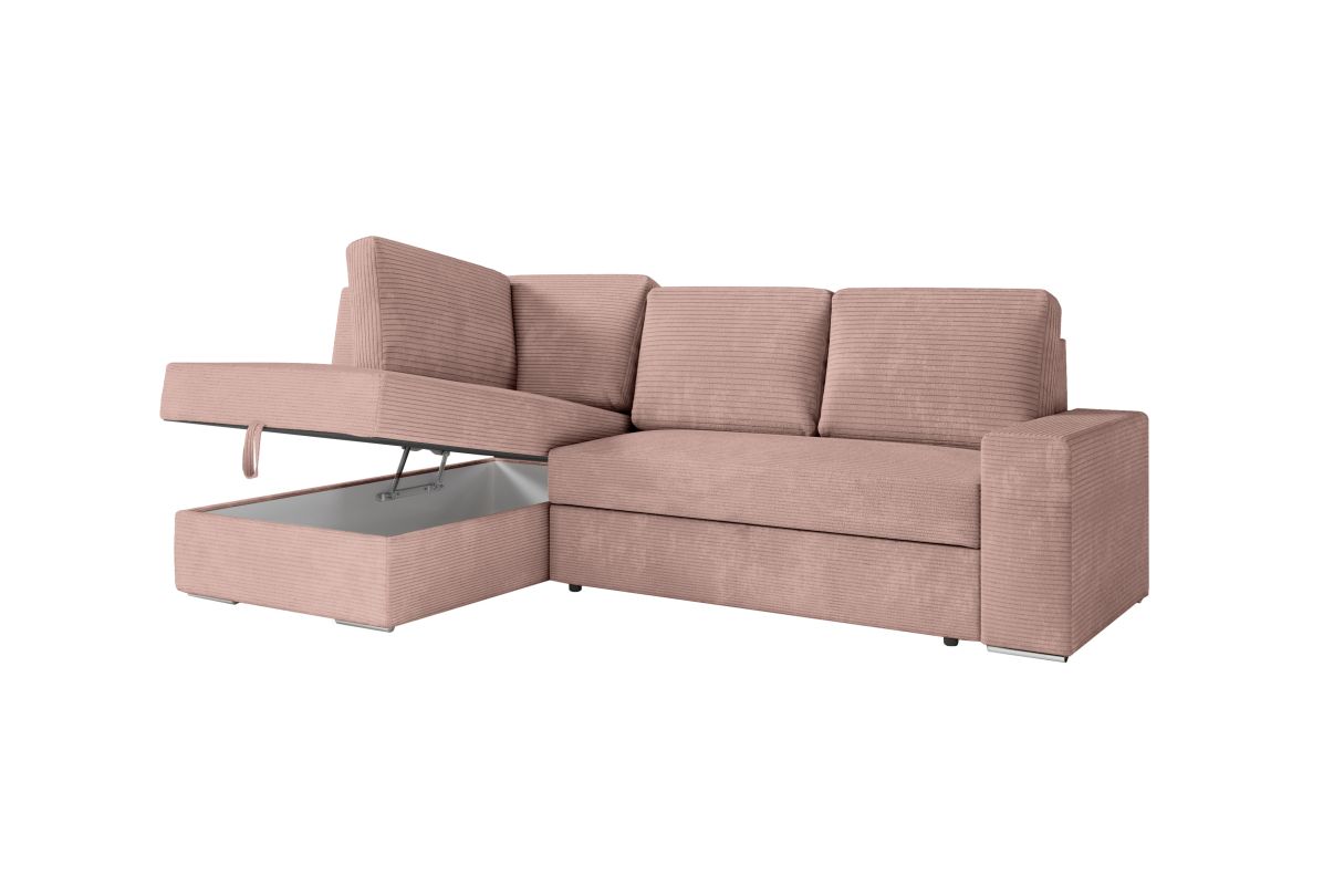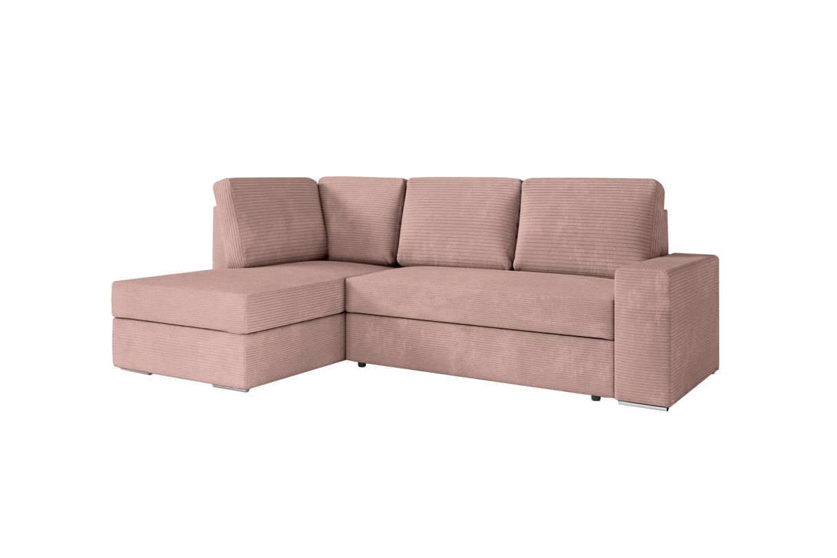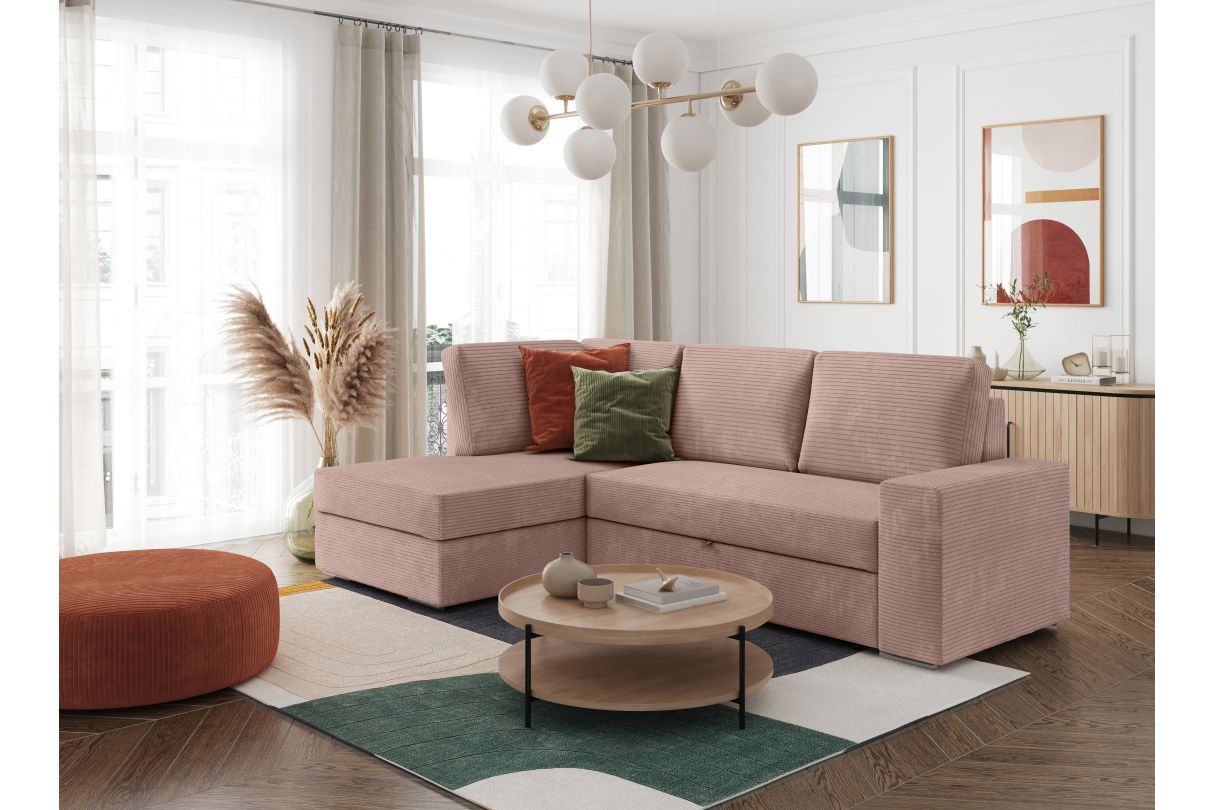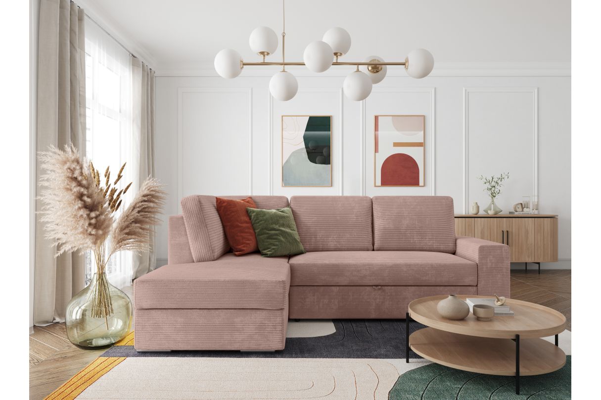 ADEN - Canapé d'angle convertible avec coffre en velours côtelé - Angle gauche - Vieux rose