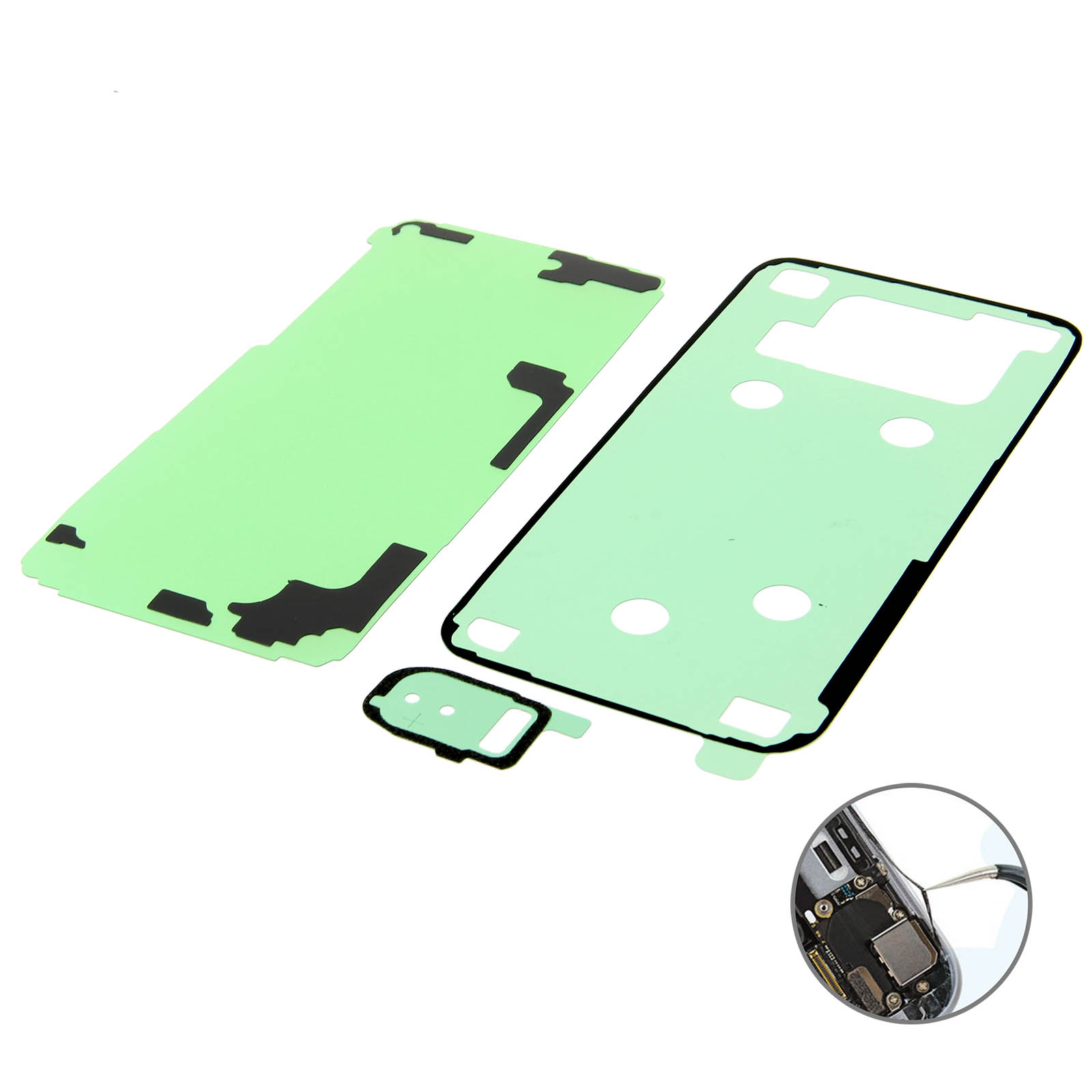 Set adhésifs pour vitre arrière, caméra et composantes internes Samsung Galaxy S7 Edge. Indispensables pour remonter votre téléphone après un démontage ou une réparation et que l'ancien adhésif ne maintient plus les pièces en place. Rétablit l'étanchéité.