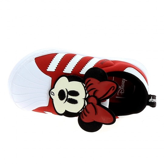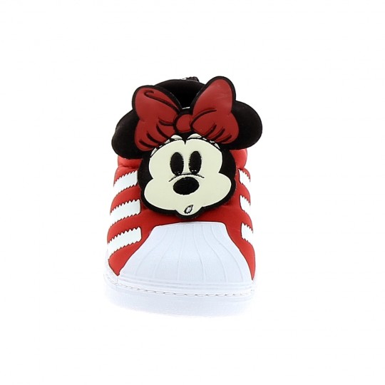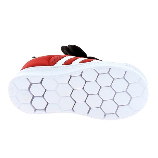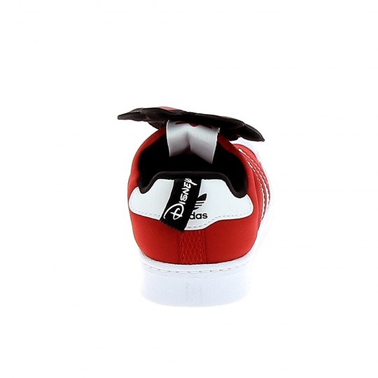 Chaussure bébé de la marque ADIDAS, la Superstar, couleur rouge et noir, motif Mini