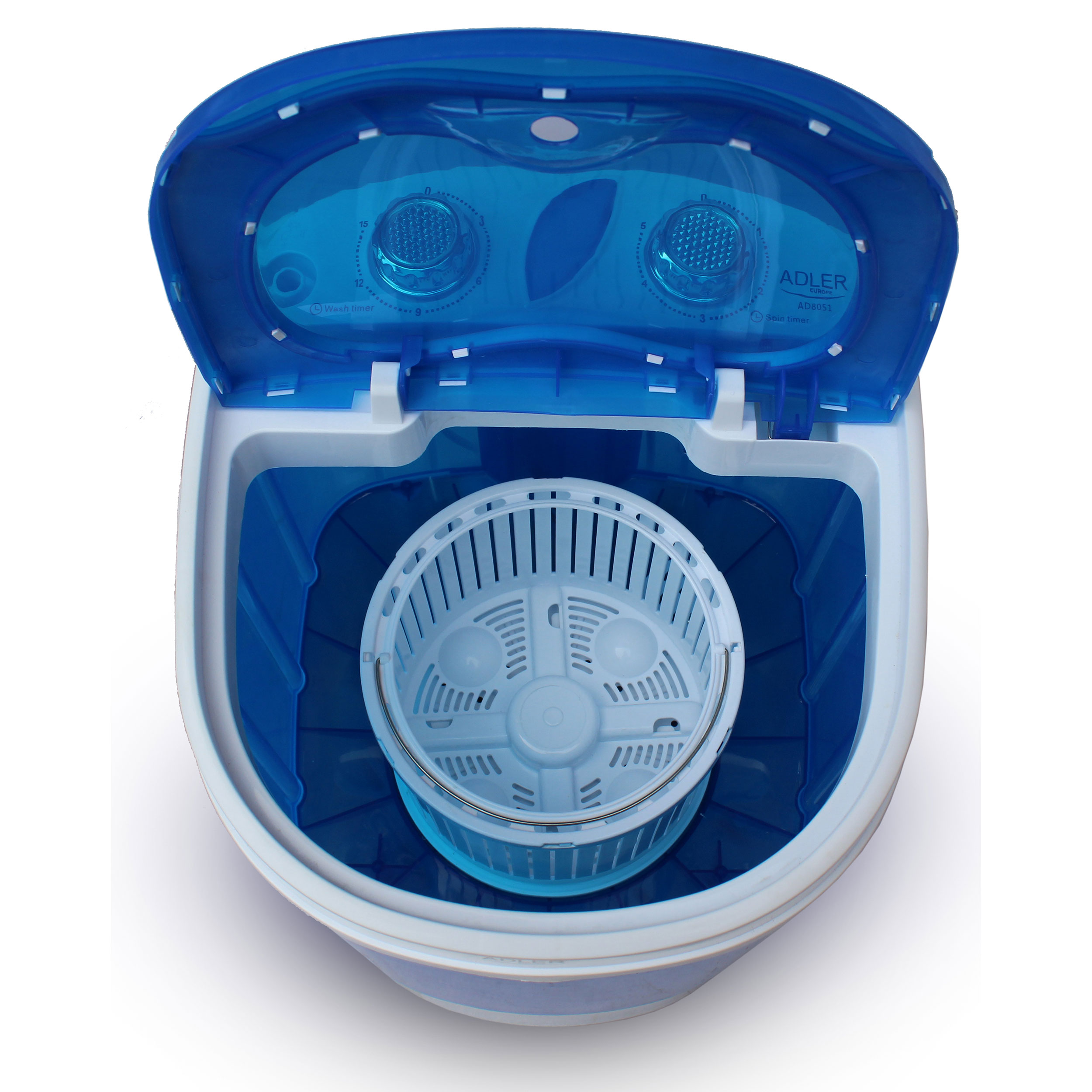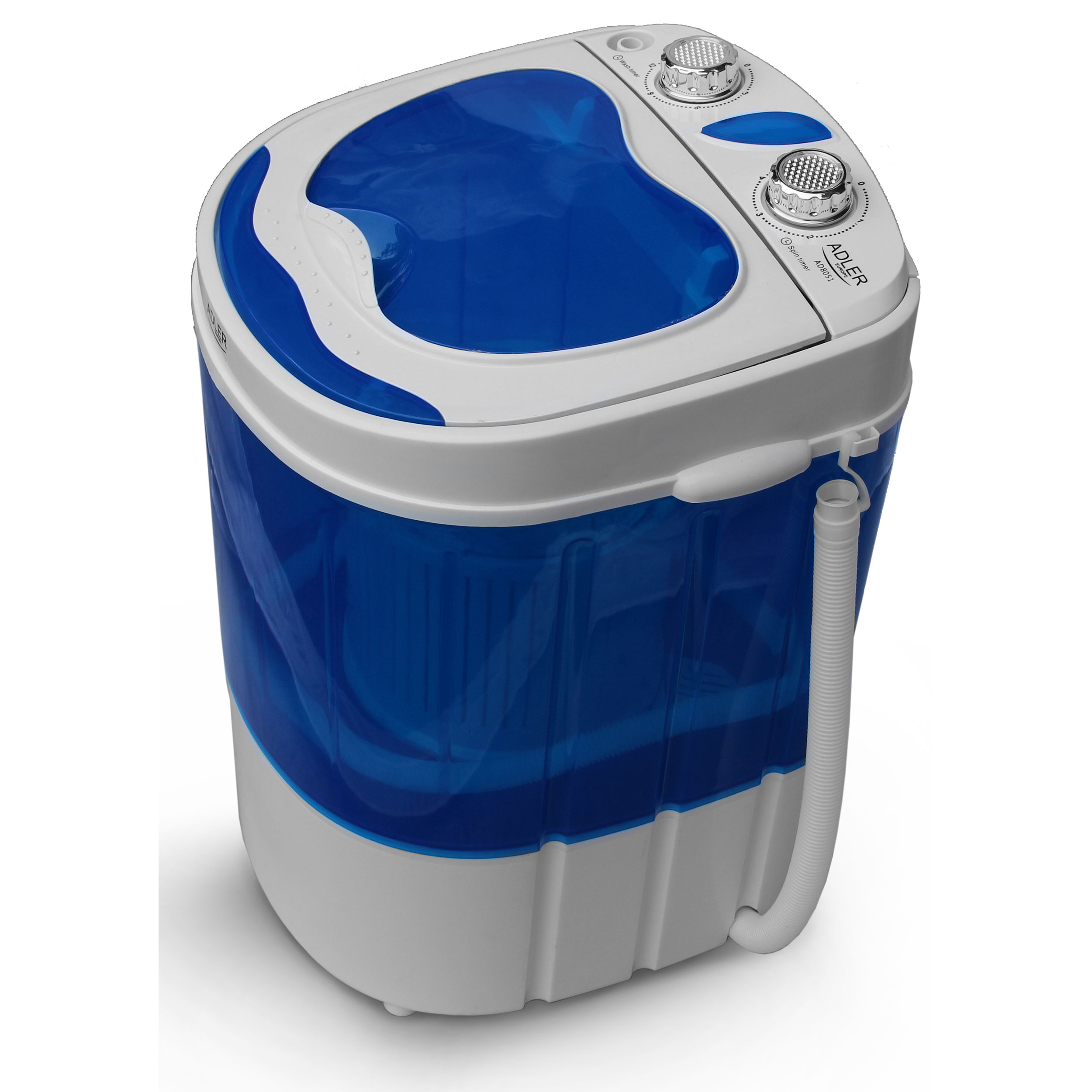 Adler AD 8051. Type de chargement: Charge par dessus. Capacité nominale: 3 kg. Couleur du produit: Bleu, Blanc. Largeur: 360 mm, Profondeur: 370 mm, Hauteur: 530 mm