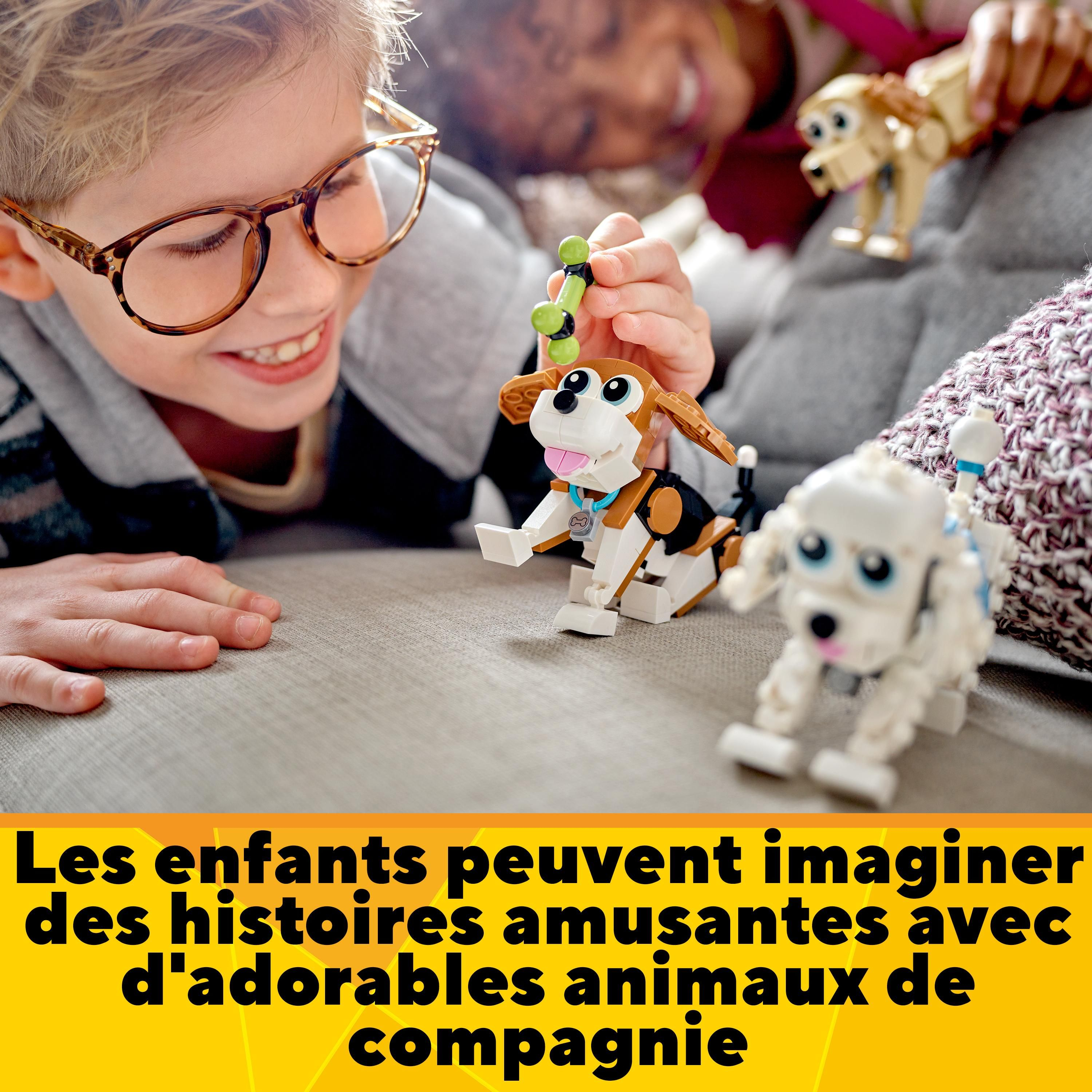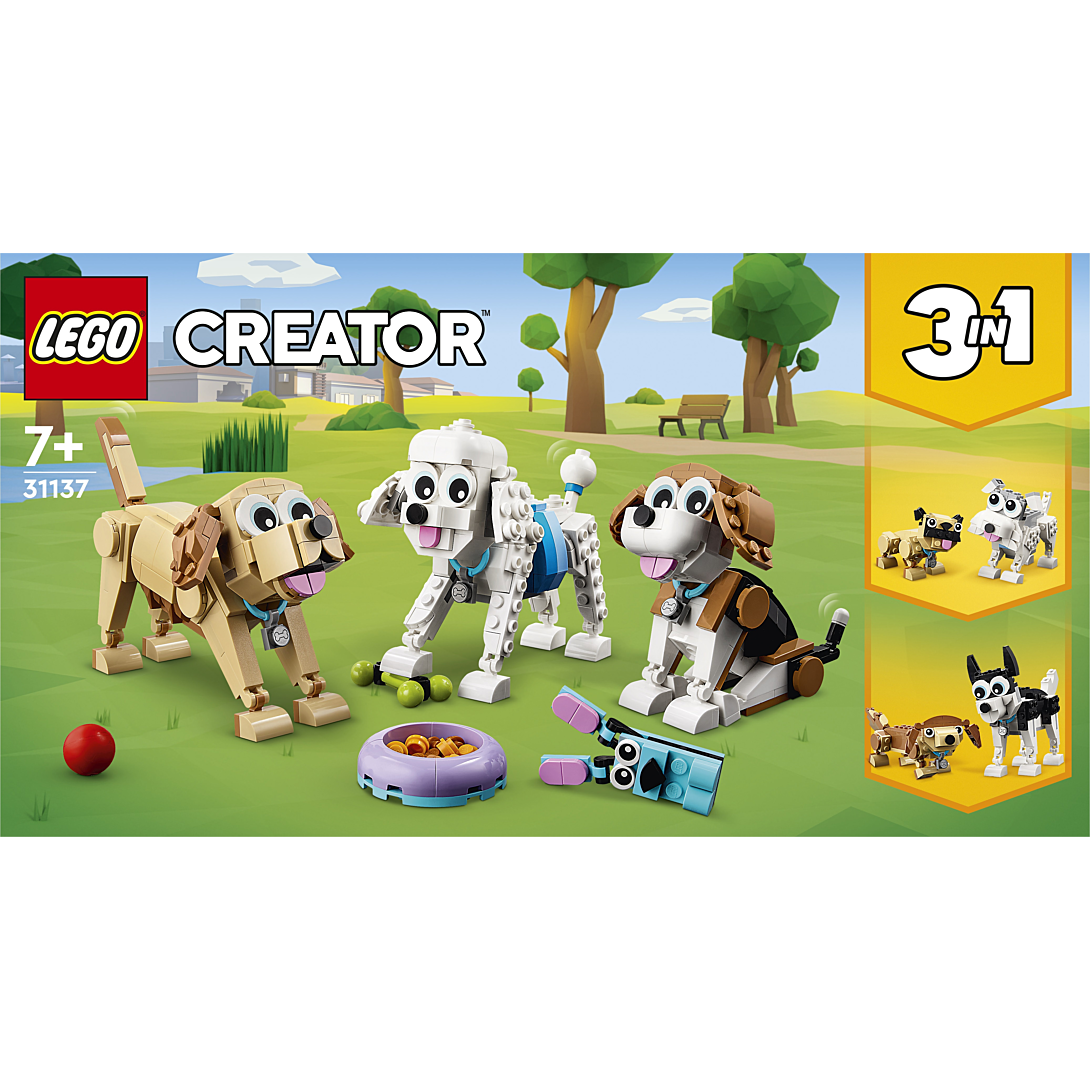 | Plus produit | Les enfants peuvent faire le plein daventures canines avec le fantastique set de construction LEGO® Creator 3-en-1 Adorables chiens, qui inclut un beagle, un caniche et un labrador. |
