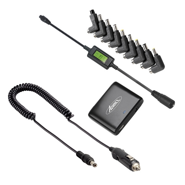 Chargeur pour voiture sur prise allume cigare, il détecte automatiquement et affiche sur son écran LCD la tension demandée. 3 en 1, il vous permet de recharger votre Netbook mais aussi votre smartphone ou tablette avec son port USB intégré.