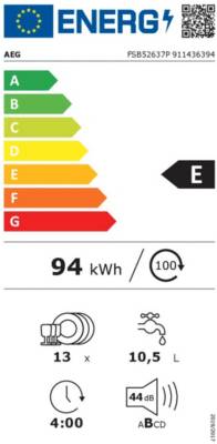 | Libellé | AEG FSB52637P Entièrement intégré 13 couverts E |