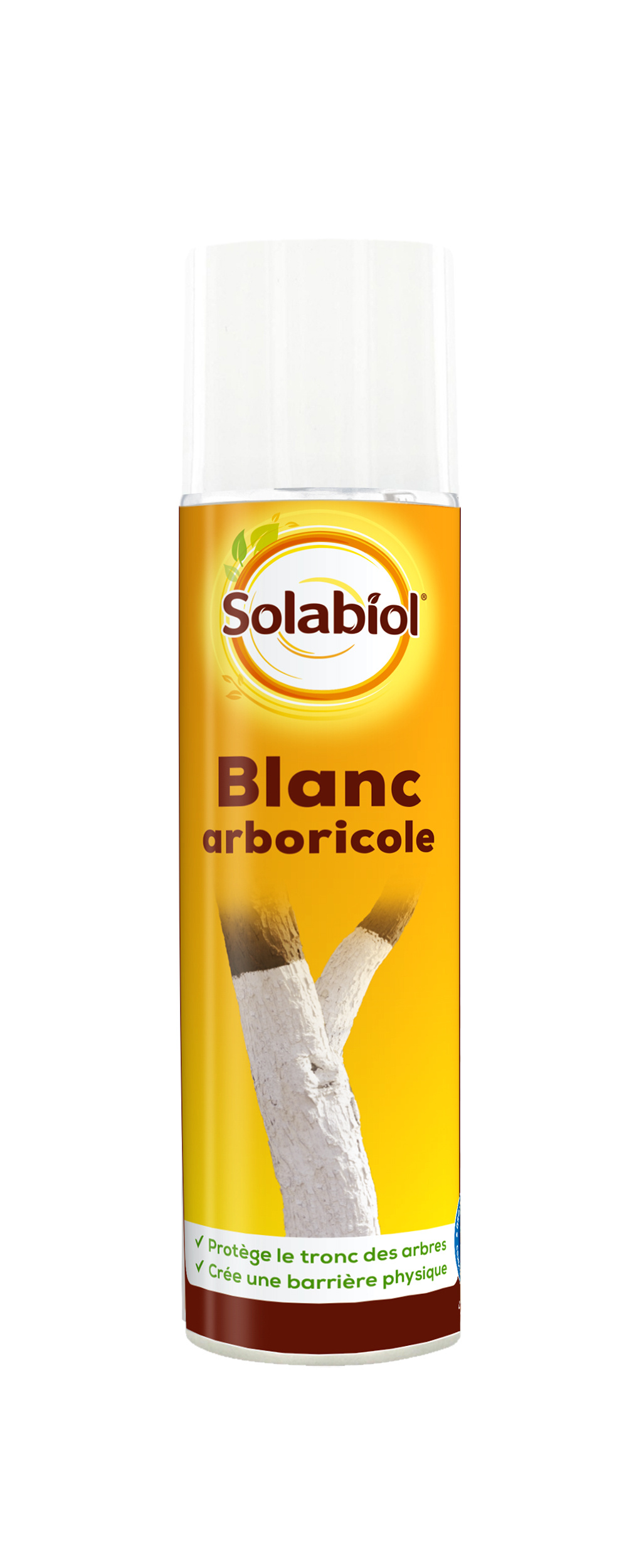 L’aérosol Blanc Arboricole Solabiol est un produit à base de fleur de chaux dont ses caractéristiques permettent une couverture homogène et une couleur renforcée. Sa formulation prête à l’emploi permet une utilisation simplifiée et rapide. Appliqué en hiver sur les troncs des arbres fruitiers et d’ornement, il crée une barrière physique qui protège des parasites, champignons, mousses et lichens. Le blanc arboricole s’utilise également sur les troncs des jeunes arbres pour les protéger du soleil et du gel.