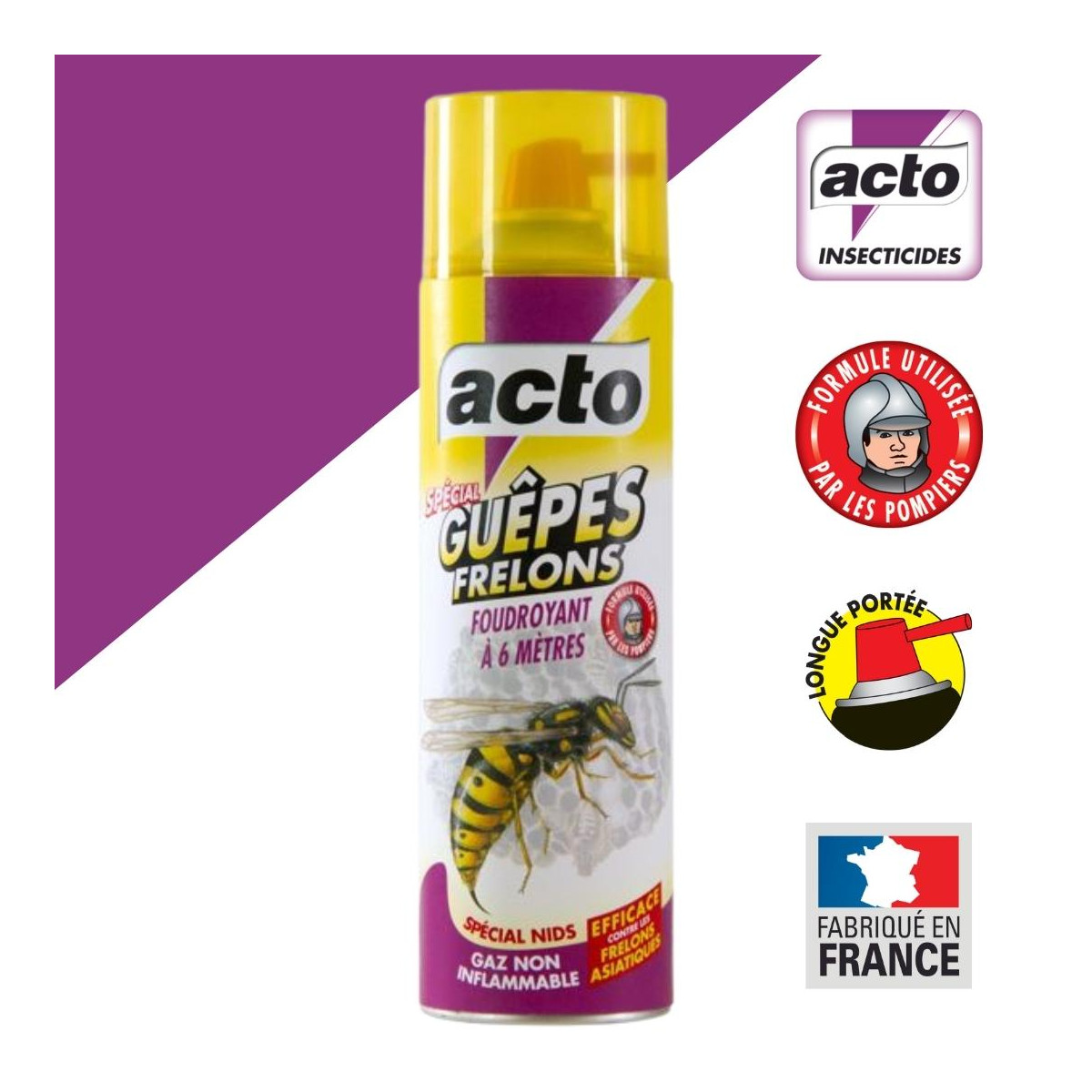 | Libellé | Aérosol Insecticide ACTO Spécial GUEPES - FRELONS Longue Portée 6 Mètres, 500 ml |