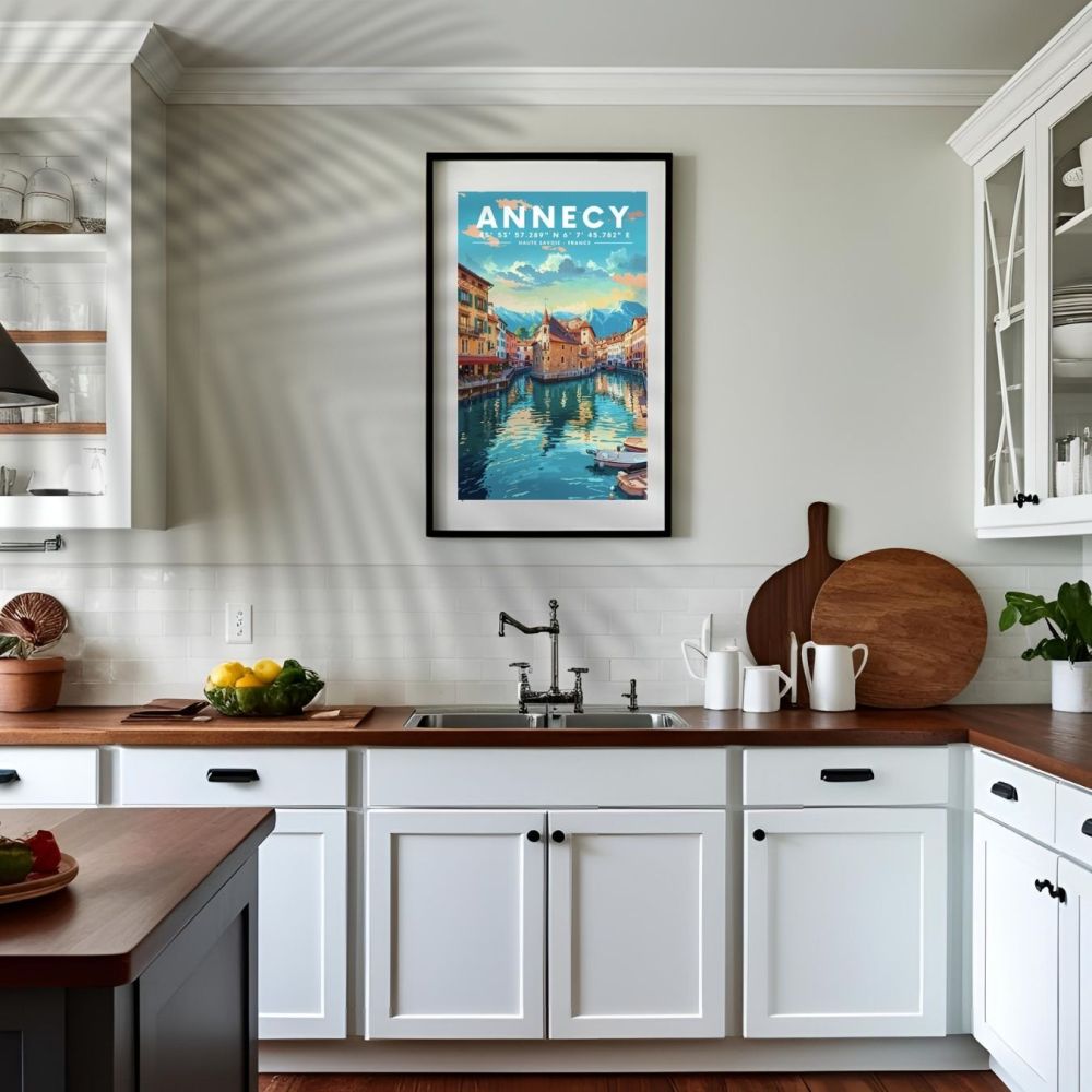 Le style vintage et rétro de cette affiche apporte une dimension nostalgique et raffinée, idéale pour ceux qui cherchent à ajouter une touche de charme à leur décoration. Parfaite pour les amateurs de beaux paysages français et de décors raffinés, elle évoque le calme et la beauté d'Annecy, offrant à vos murs une ambiance chic et apaisante.