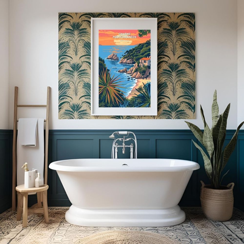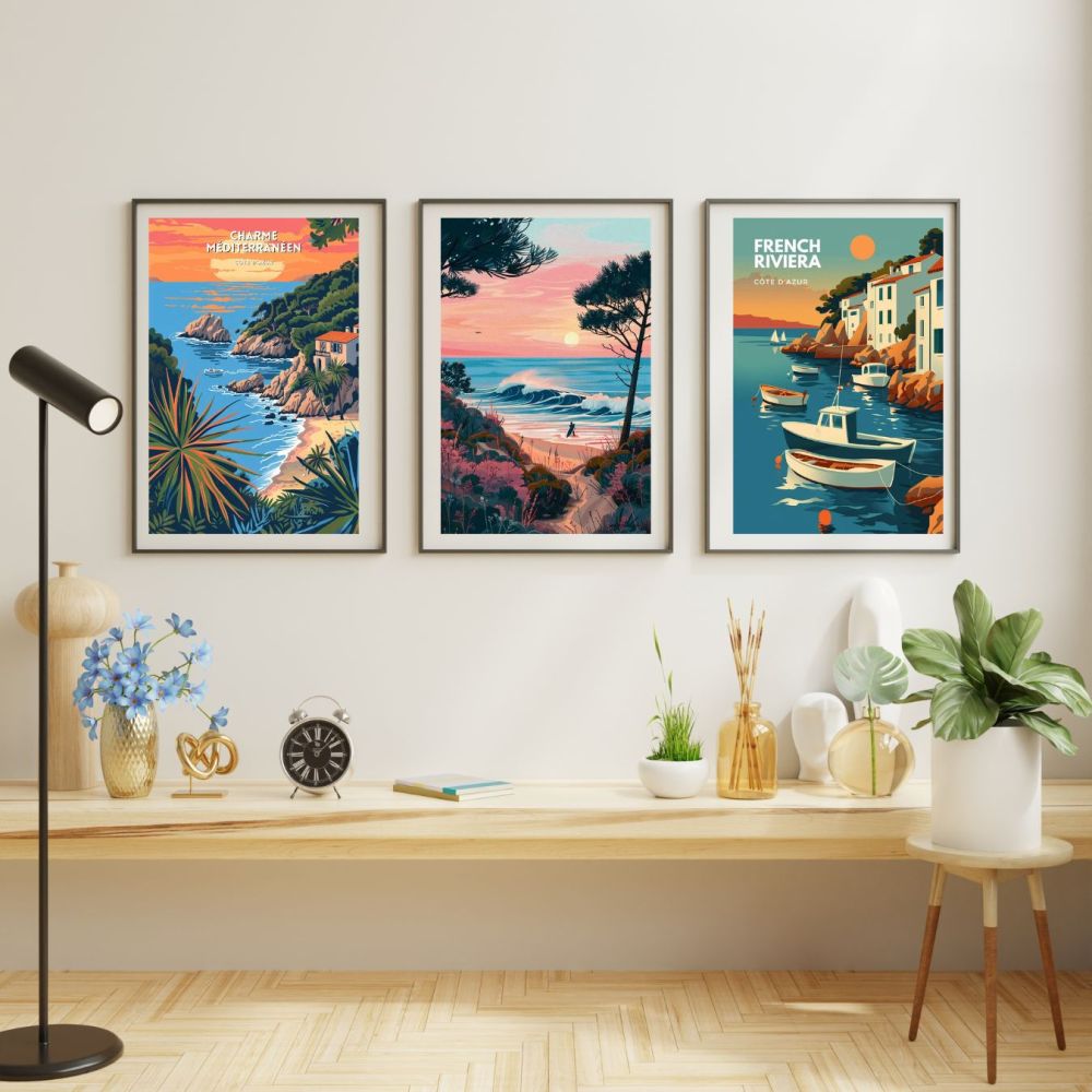 Que vous soyez un amateur de décoration rétro ou un passionné des paysages du sud de la France, cette affiche saura parfaitement s'intégrer à votre intérieur. Elle est également un cadeau idéal pour ceux qui apprécient les illustrations vintage et l'atmosphère ensoleillée de la Méditerranée. Découvrez cette œuvre captivante et laissez-vous emporter par la sérénité et le charme du littoral méditerranéen.