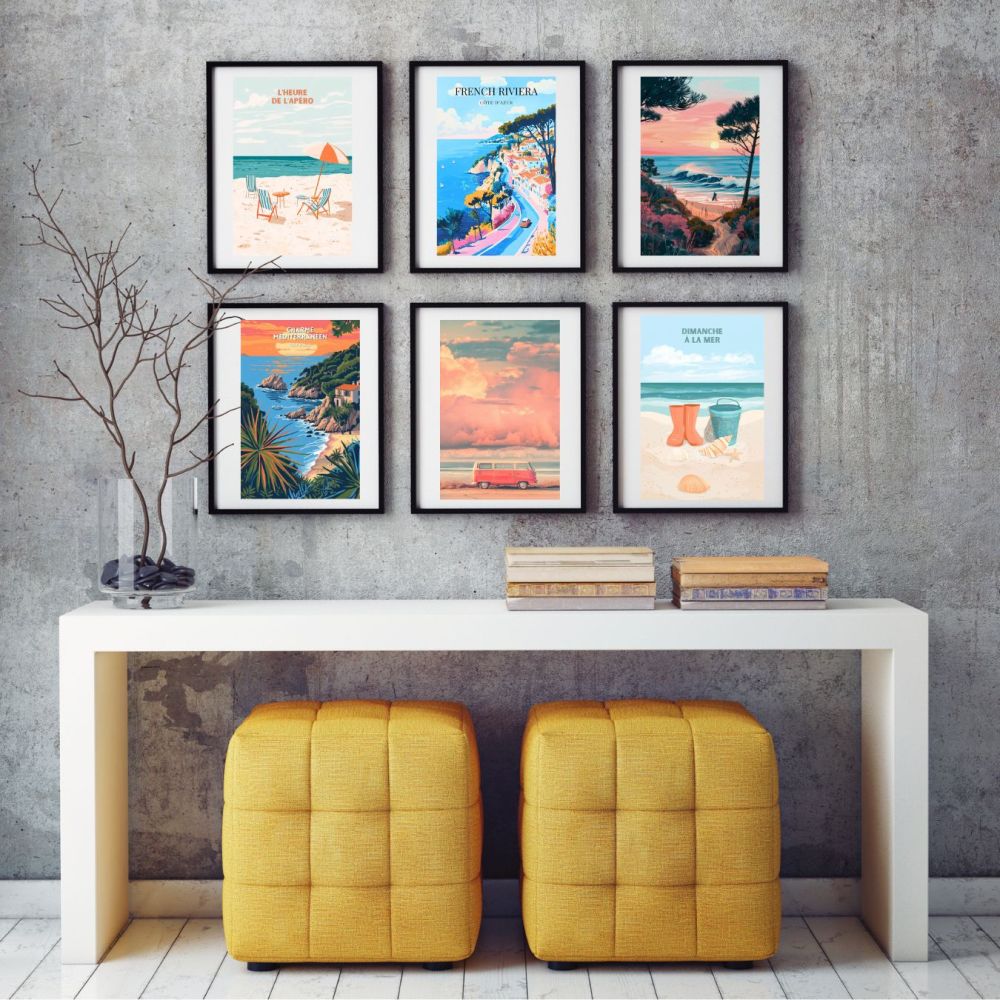 Ce poster est parfait pour enrichir n'importe quel espace, que ce soit votre salon, votre chambre ou votre bureau. Il évoque la beauté intemporelle du sud de la France et rend hommage à ses paysages idylliques. Sa conception vintage et élégante, avec des teintes dorées et orangées, apportera une touche d'authenticité et de charme méditerranéen.