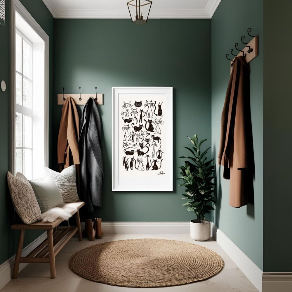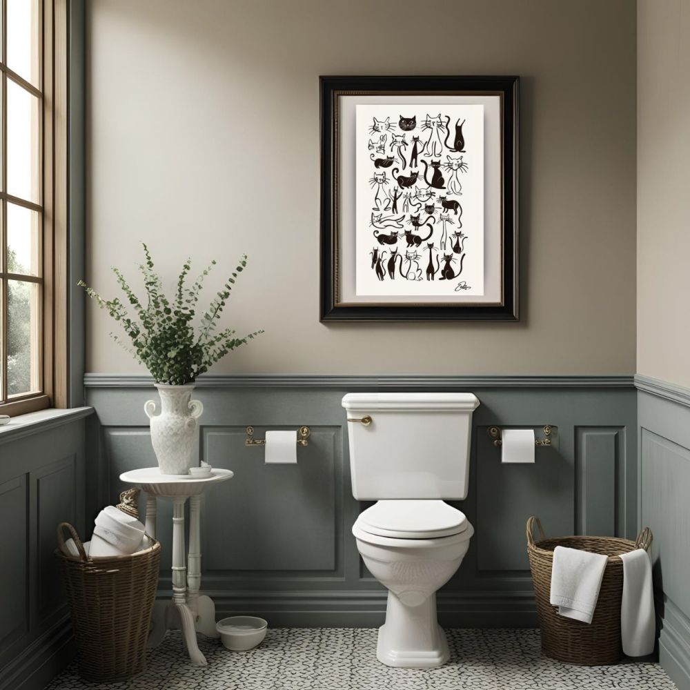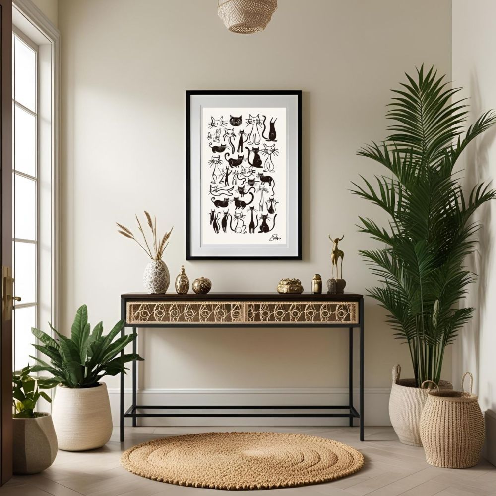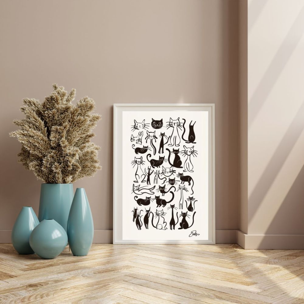 Son style vintage chic s'intègre harmonieusement à tous les univers déco — du contemporain au plus rétro. Que ce soit dans un salon design, une chambre cosy ou un coin lecture inspirant, ce poster saura séduire les amoureux des chats et les passionnés de design graphique.