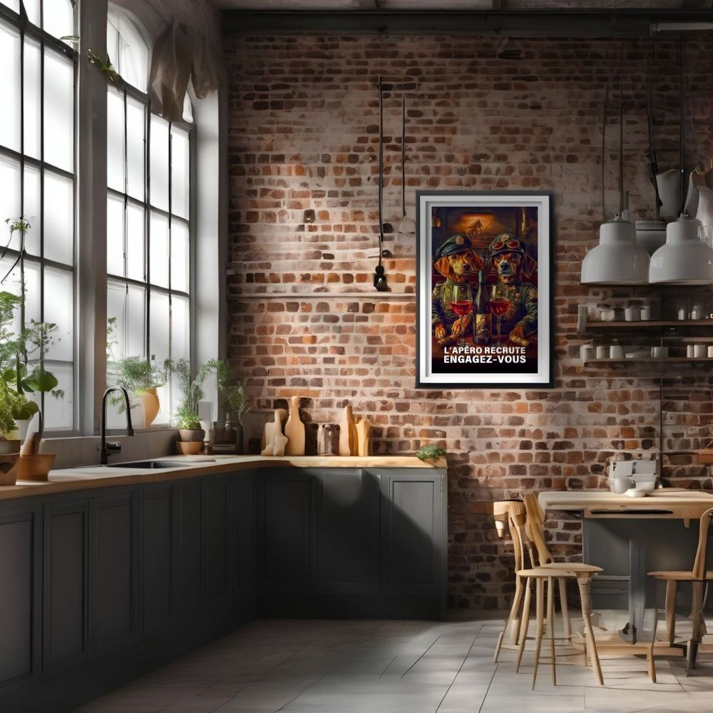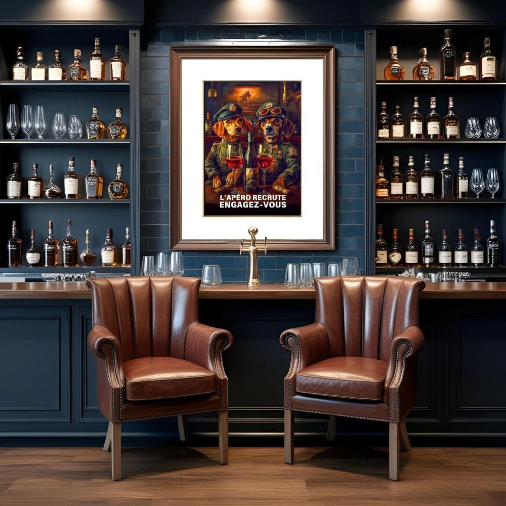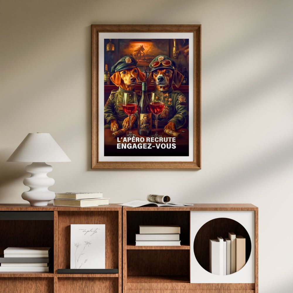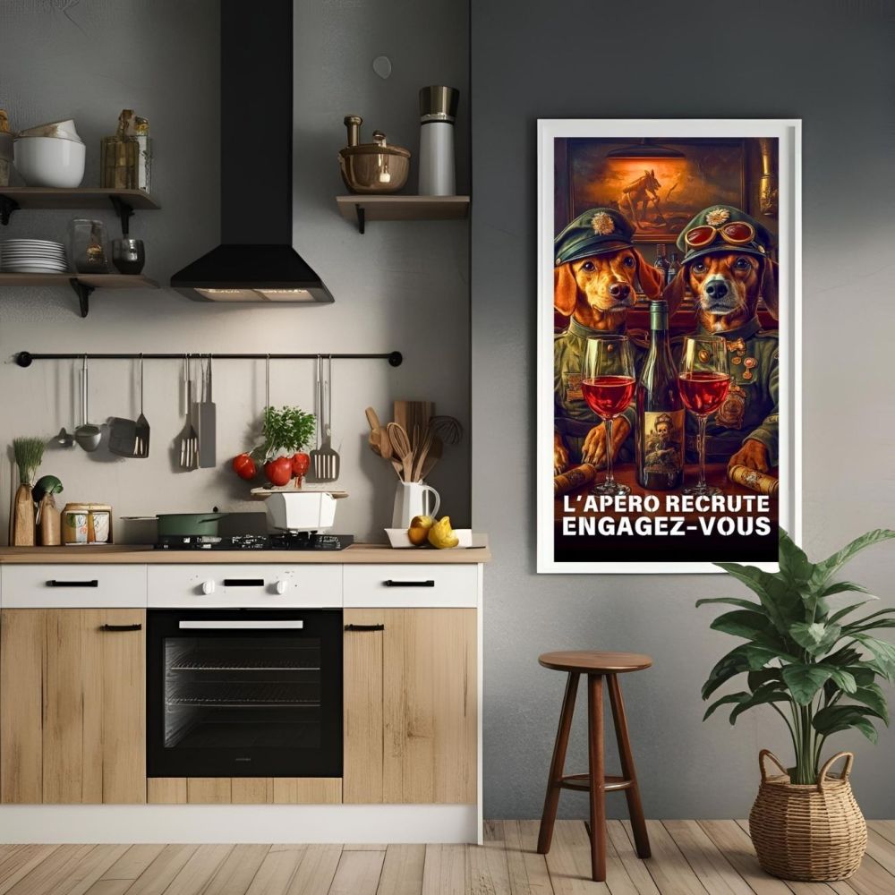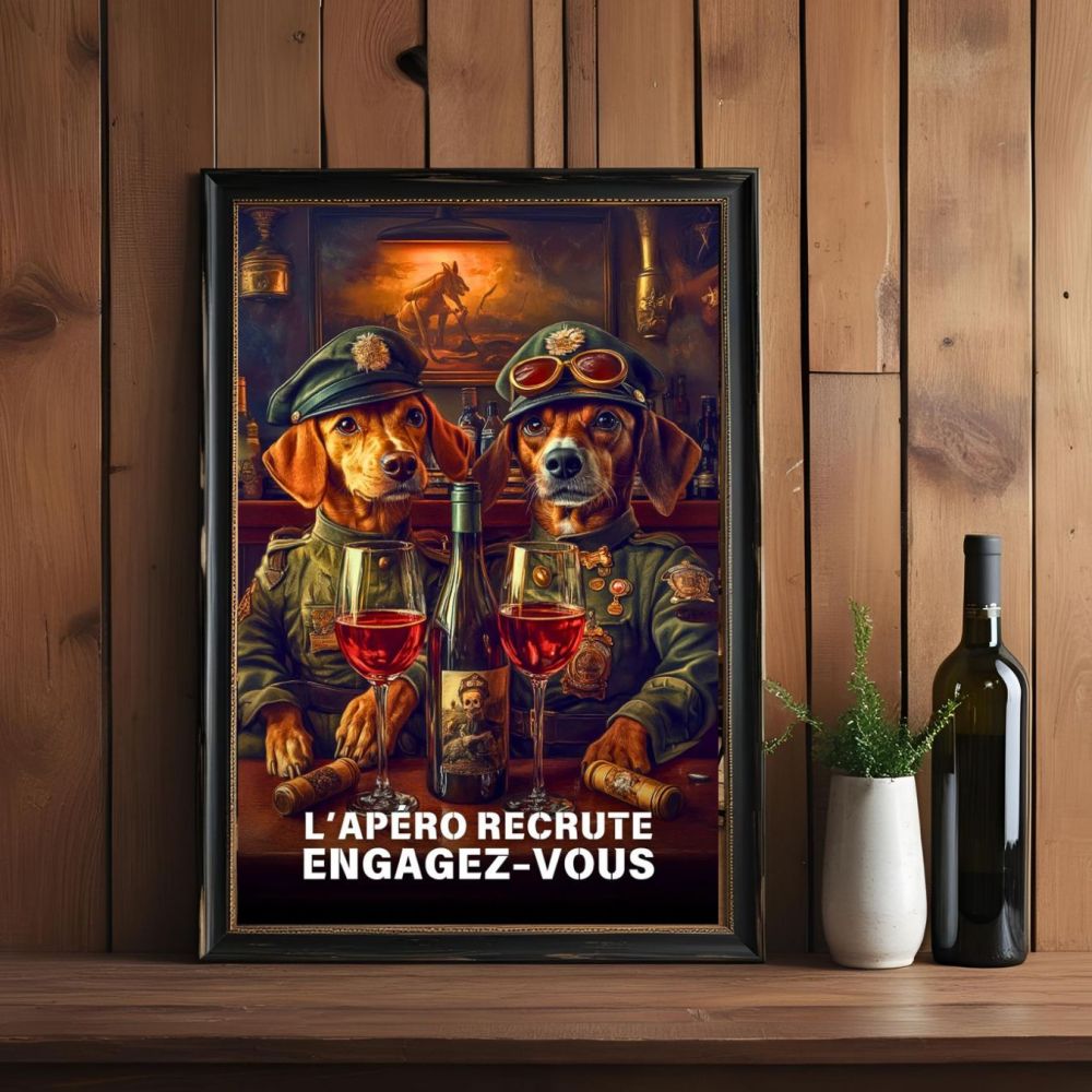 Ajoutez une touche d'humour et de convivialité à votre décoration avec notre affiche "L'apéro recrute - Engagez-vous". Cette illustration rigolote permettra d' instaurer une ambiance chaleureuse et décontractée, parfaite pour les amateurs d'apéro et de bons moments entre amis.