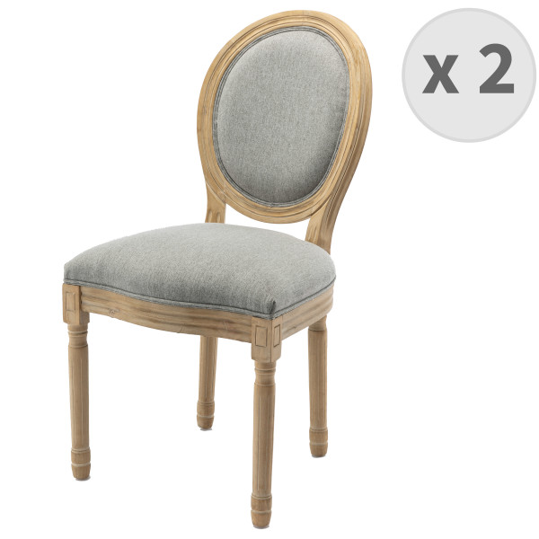 Libellé AGATHE - Chaise médaillon gris pieds bois(x2)