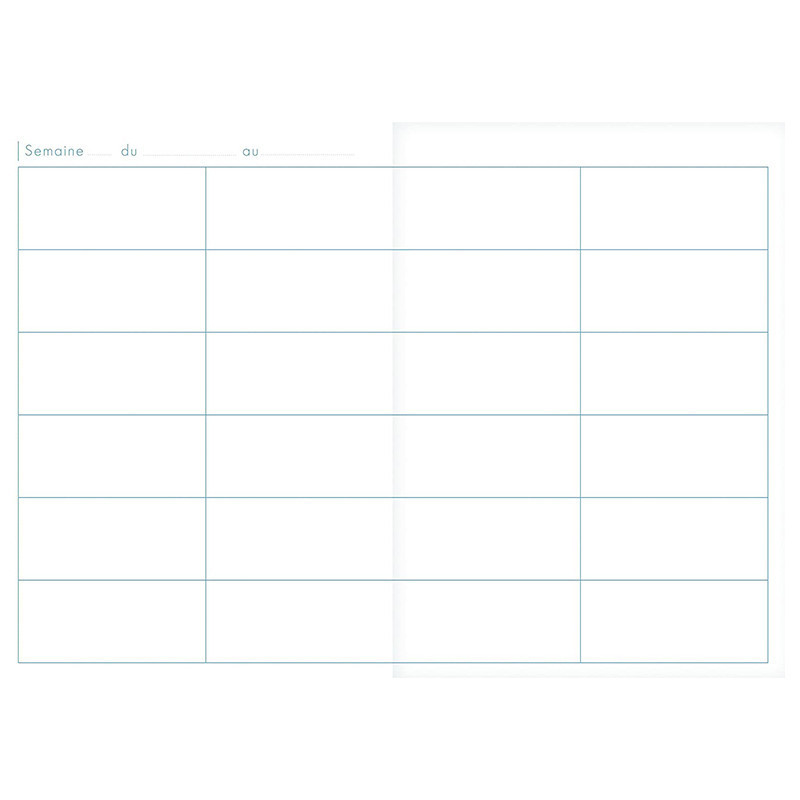 Les semaines sont présentées sous forme de tableau 4 colonnes et 24 cases.