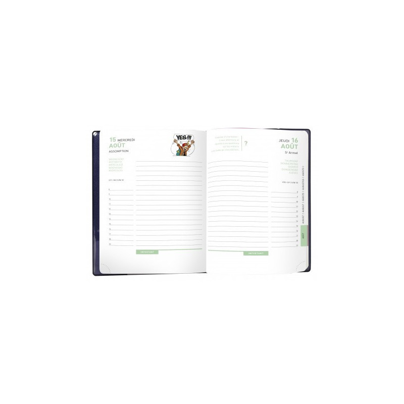 • A l'intérieur de l'agenda, des dessins humoristiques issus de bandes dessinées apportent une touche d'humour au quotidien