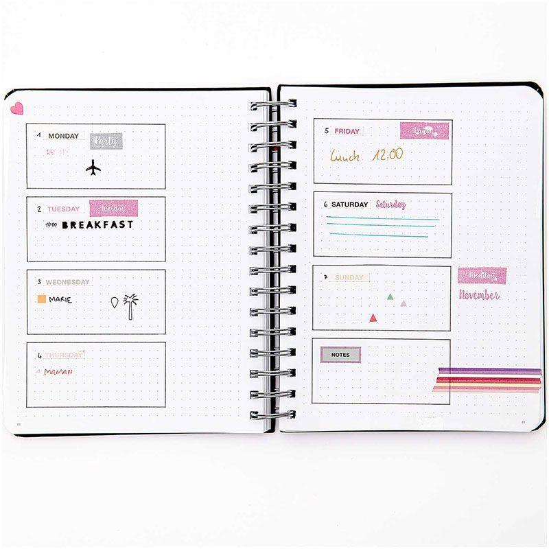 Agenda spécial Bullet journal à spirales 96 feuilles - 16,5 x 21,5 cm